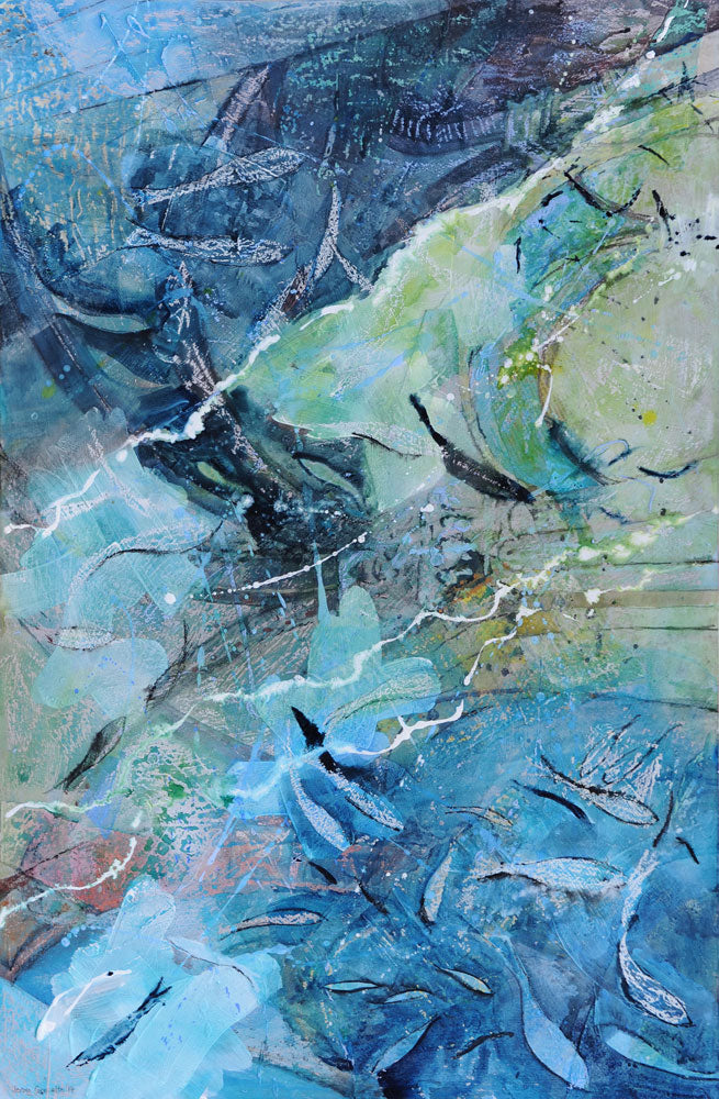 Jenny Grevatte is continually evolving and developing her ideas and methods. Recent themes include trees and woods, hedges, rooftops, huts , bookshelves, rock formations, sunflowers, artichokes, wild flowers and, her constant favourite, still life. Scale, format and composition are exciting challenges for her and recently she has been exploring the quality and mystery of changes of light in the landscape. A new and powerful theme is the moon, seen in all its varying moods and allowing Jenny to introduce a new palette of dark colours.