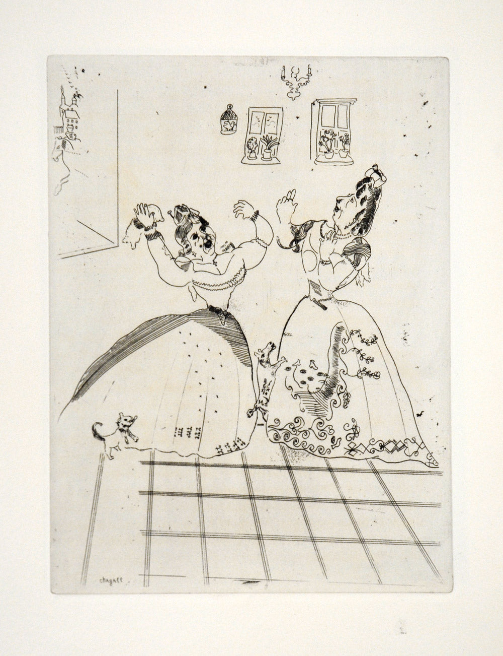 Returning to Paris in 1923 he met the art-dealer Vollard for whom he illustrated Gogol’s Dead Souls and the Fables of La Fontaine. Between 1941-47 he moved between occupied France and the USA, eventually settling near Nice. Chagall was a prolific artist, his work reminiscent of Jewish life, bible stories and of the folklore from his early years in Russia. He died in 1985.