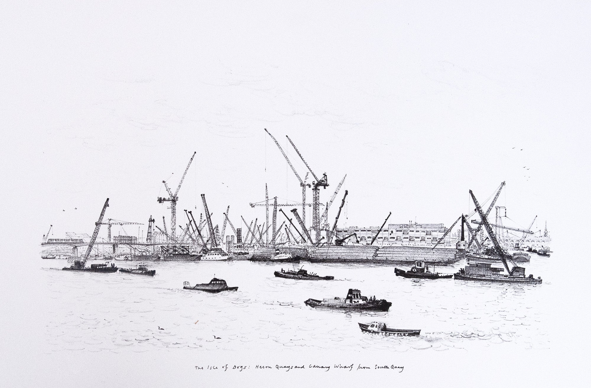 His wood engraved platform-length mural at Charing Cross is one of London’s most striking underground station designs. He has held many exhibitions of watercolours, published many lithographs and screen-prints, and designed British postage stamps, coins and anti-Iraq war placards.