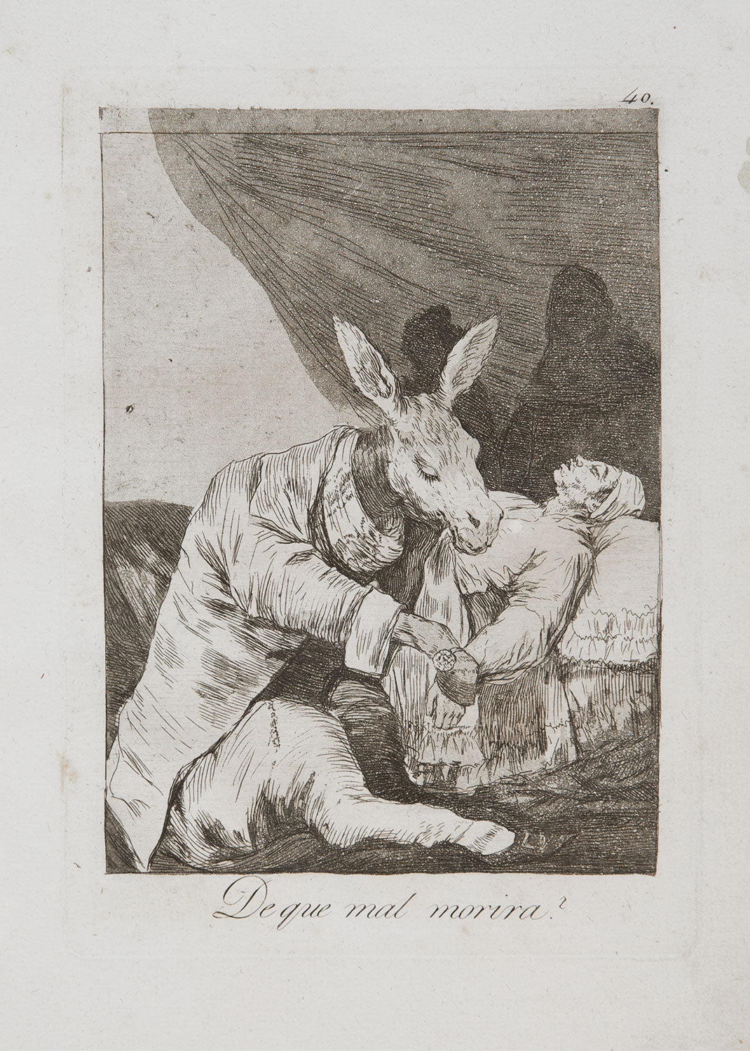 Now almost deaf, Goya’s work showed greater elements of fantasy and satirical observation. Completed in 1799, the Caprichos etchings analysed humanity’s flaws and provided the stylistic basis for his greatest and darkest work, The Disasters of War, composed during the Peninsular War. Goya later returned to Spain, but soon went into voluntary exile in Bordeaux, working until his death there in 1828.