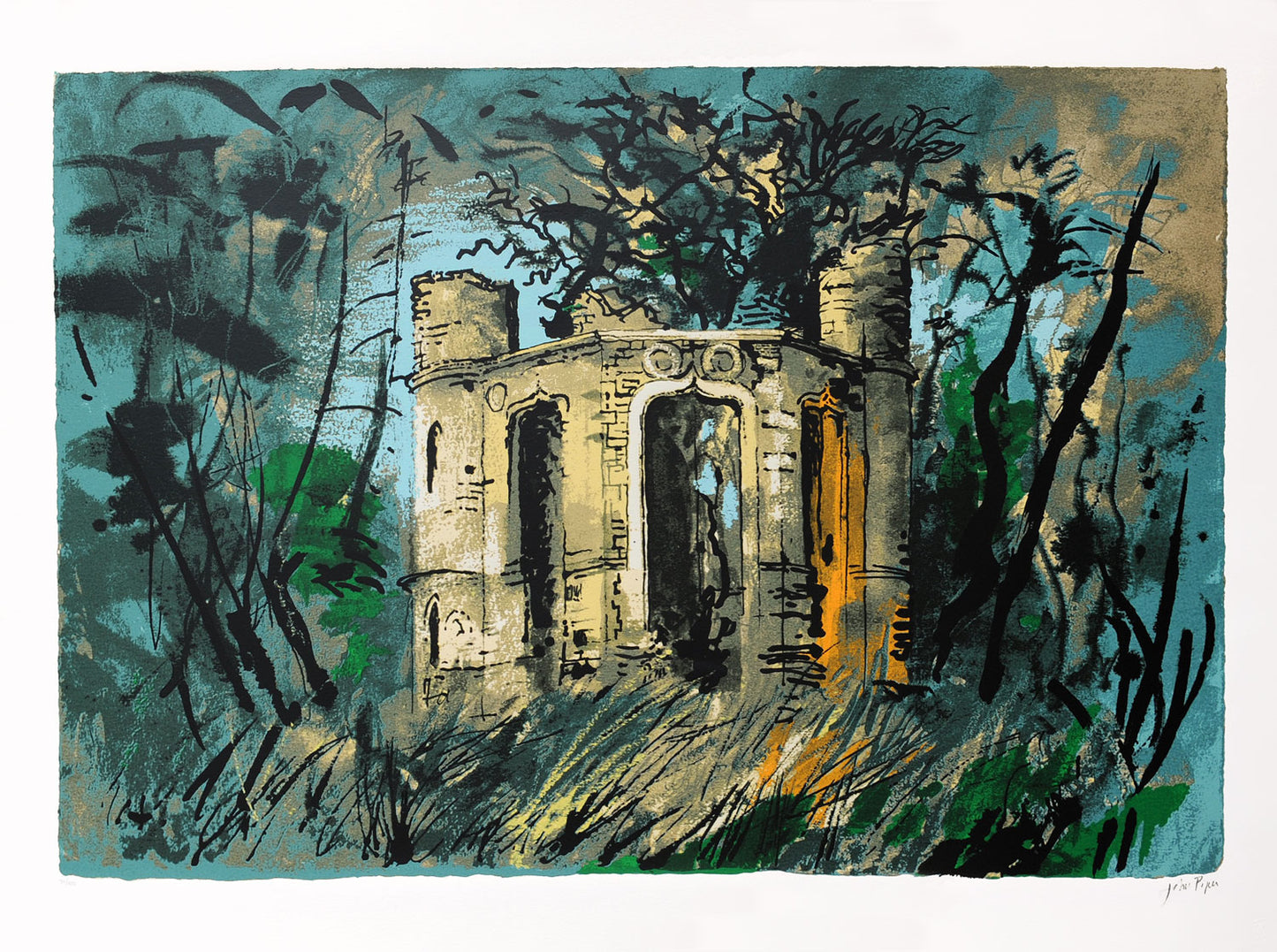 Piper experimented with printmaking from as early as 1923 when he produced four wood engravings. Piper’s prints embody his love of Britain through their depiction of its art, architecture and topography. However frequently underpinning their design, as the artist Rigby Graham has indicated, are the elements of collage, construction and assemblage that featured in his modernist work of the early 1930s.