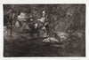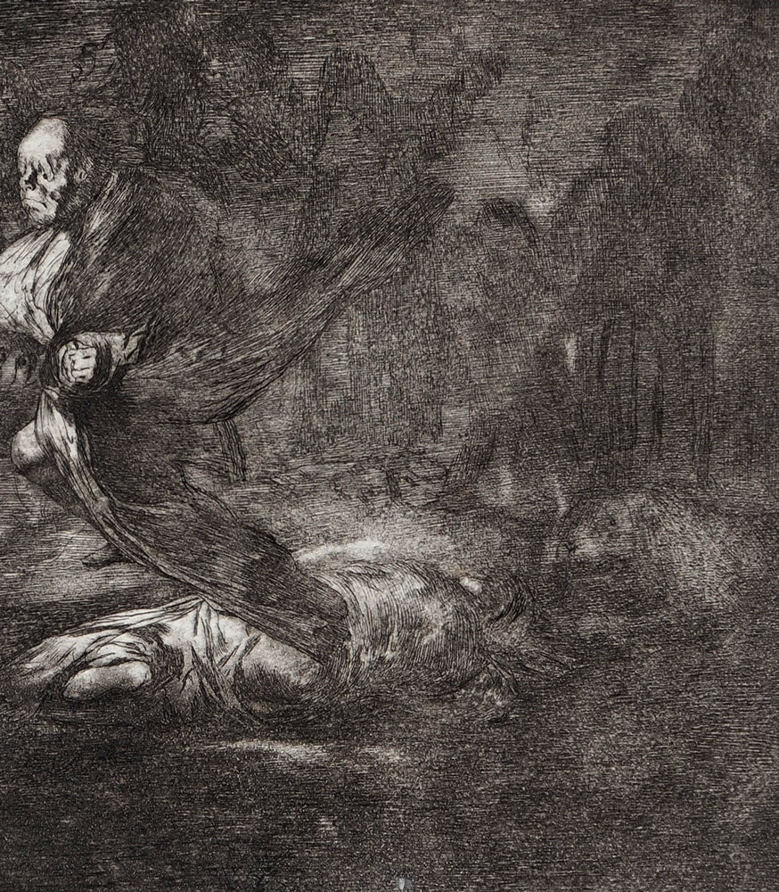 Now almost deaf, Goya’s work showed greater elements of fantasy and satirical observation. Completed in 1799, the Caprichos etchings analysed humanity’s flaws and provided the stylistic basis for his greatest and darkest work, The Disasters of War, composed during the Peninsular War. Goya later returned to Spain, but soon went into voluntary exile in Bordeaux, working until his death there in 1828.