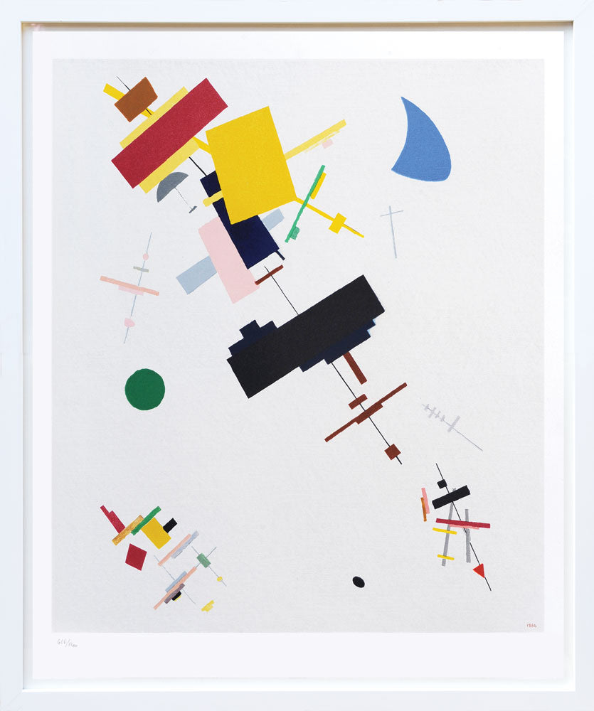 The Suprematist movement – characterized by unprecedented bold geometric shapes with interrelating proportions – was hugely controversial, and when the Lenin and Trotsky fell from power and the Stalinist regime began, Malevich’s art was lablled ‘bourgeois’, confiscated and ultimately banned from display. After his death in 1935, his most ground-breaking work, the black square, was hung above his deathbed and mourners were permitted to wave black square banners at his funeral.