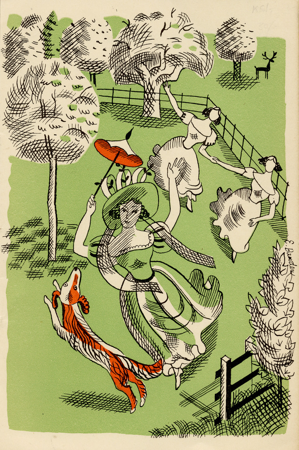 Original lithograph by Edward Bawden to illustrate Edith Sitwell's poem Popular Song.