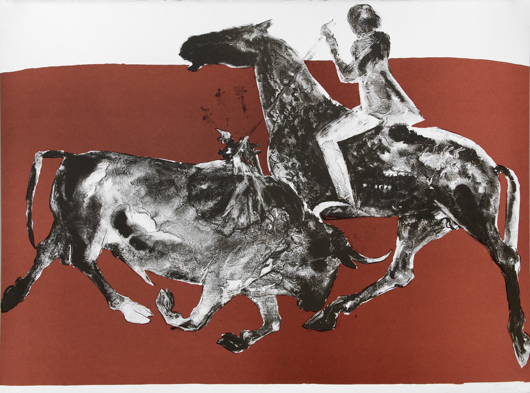 Original signed lithograph in colour, drawn on grained zinc, 1973. From the Corrida series.