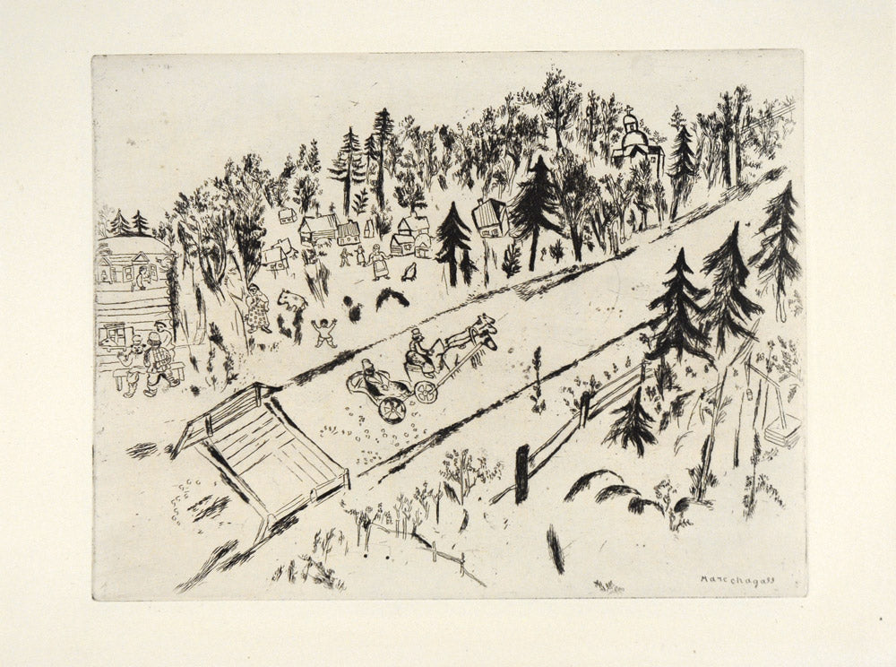 Returning to Paris in 1923 he met the art-dealer Vollard for whom he illustrated Gogol’s Dead Souls and the Fables of La Fontaine. Between 1941-47 he moved between occupied France and the USA, eventually settling near Nice. Chagall was a prolific artist, his work reminiscent of Jewish life, bible stories and of the folklore from his early years in Russia. He died in 1985.