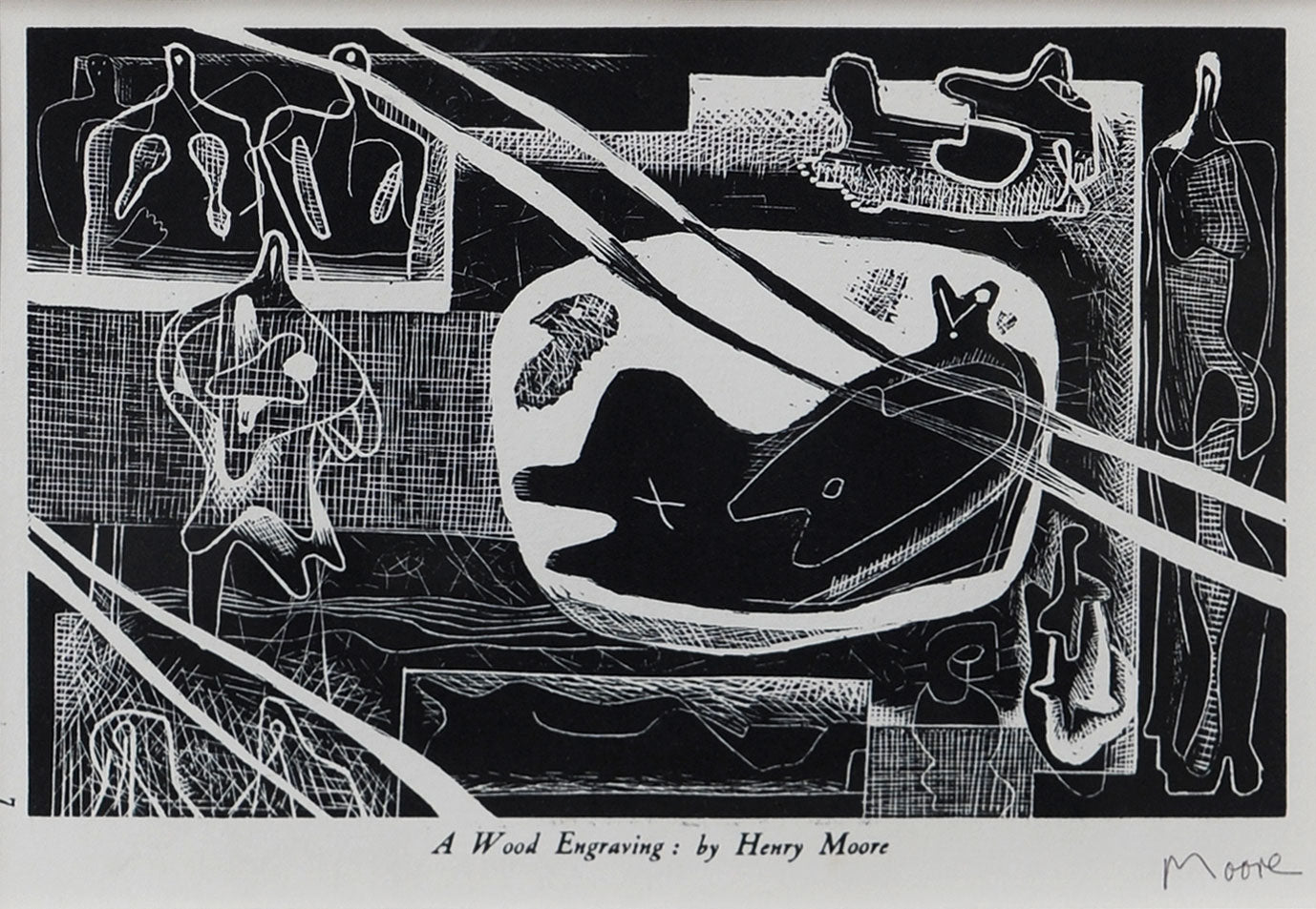 His wider reputation was assured in 1948 when he won the International Sculpture Prize at the Venice Biennale and from then on came public commissions from all over the world. Moore started printmaking in 1931, and in 1958 met the master lithographer Stanley Jones at the Curwen Press with whom he continued to make prints until the end of his life in 1986.