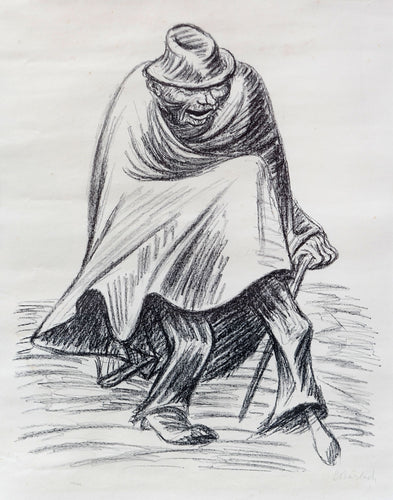 Ernst Barlach (1870-1938) produced powerful wood and bronze sculptures depicting weary, rugged figures with great dignity. Strong, bulky peasants with expressive faces were his typical subjects. A brief stint serving in WWI converted Barlach into a pacifist, after which he produced many monuments warning of the consequences of war. Later in life he concentrated on prints producing hundreds of black-and-white lithographs and woodcuts some of which illustrated books and plays he wrote himself.