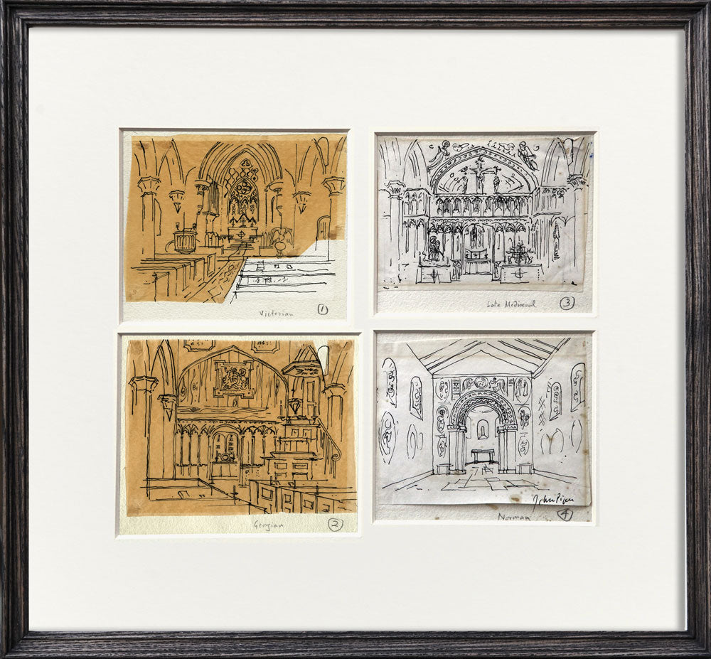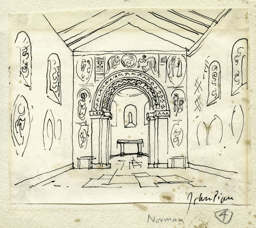 Piper experimented with printmaking from as early as 1923 when he produced four wood engravings. Piper’s prints embody his love of Britain through their depiction of its art, architecture and topography. However frequently underpinning their design, as the artist Rigby Graham has indicated, are the elements of collage, construction and assemblage that featured in his modernist work of the early 1930s.