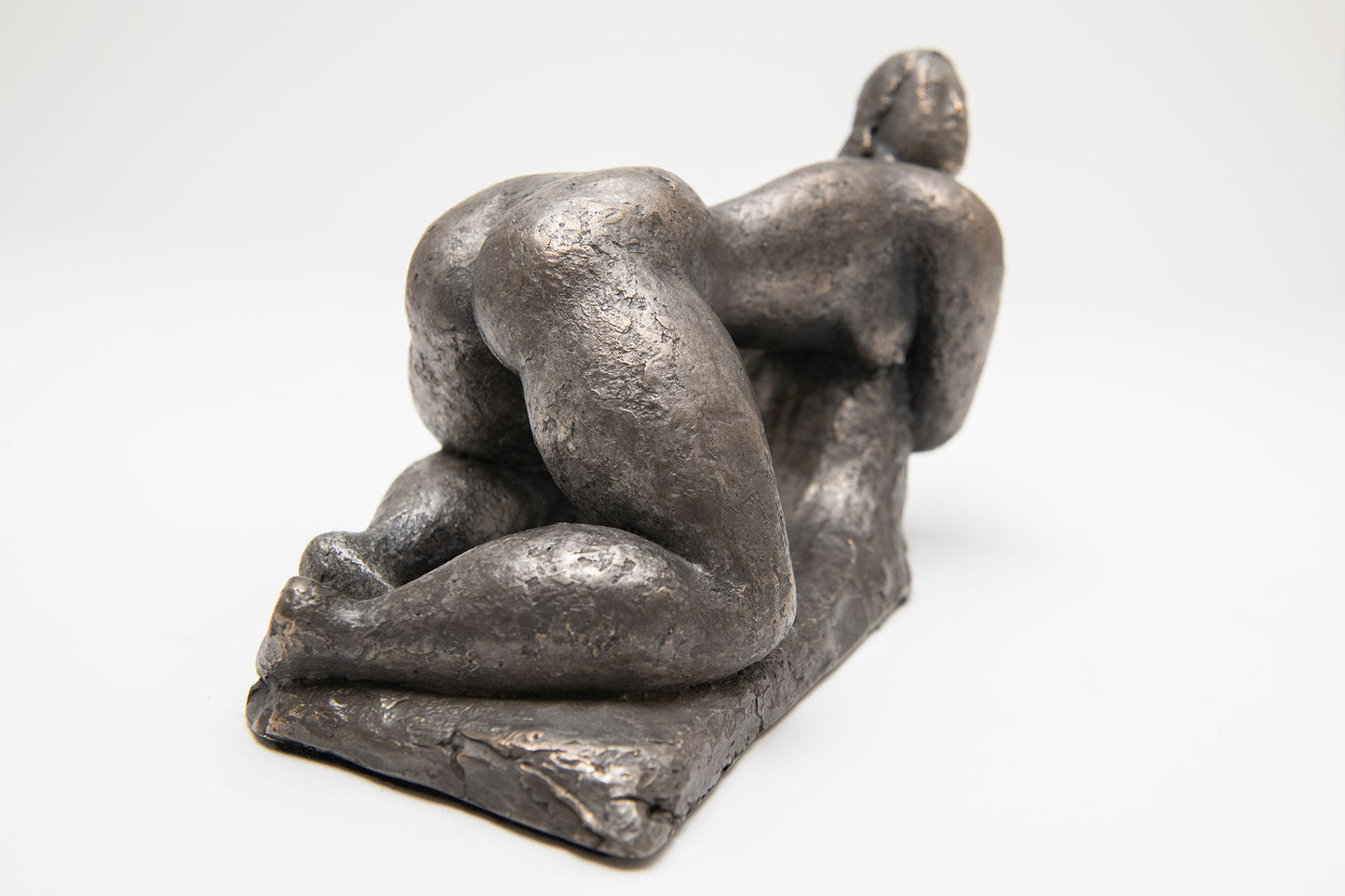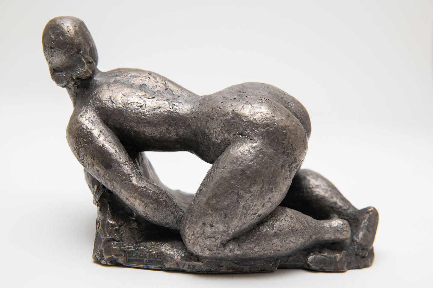 'Crawling Woman (c1944) is one of the more overtly erotic subjects which survived the cataclysm, as a unique terracotta. Now she is cast in bronze with a seductive silvery pewter patina and gold highlights. Notice her wasp waist and enhanced haunches and calves.'