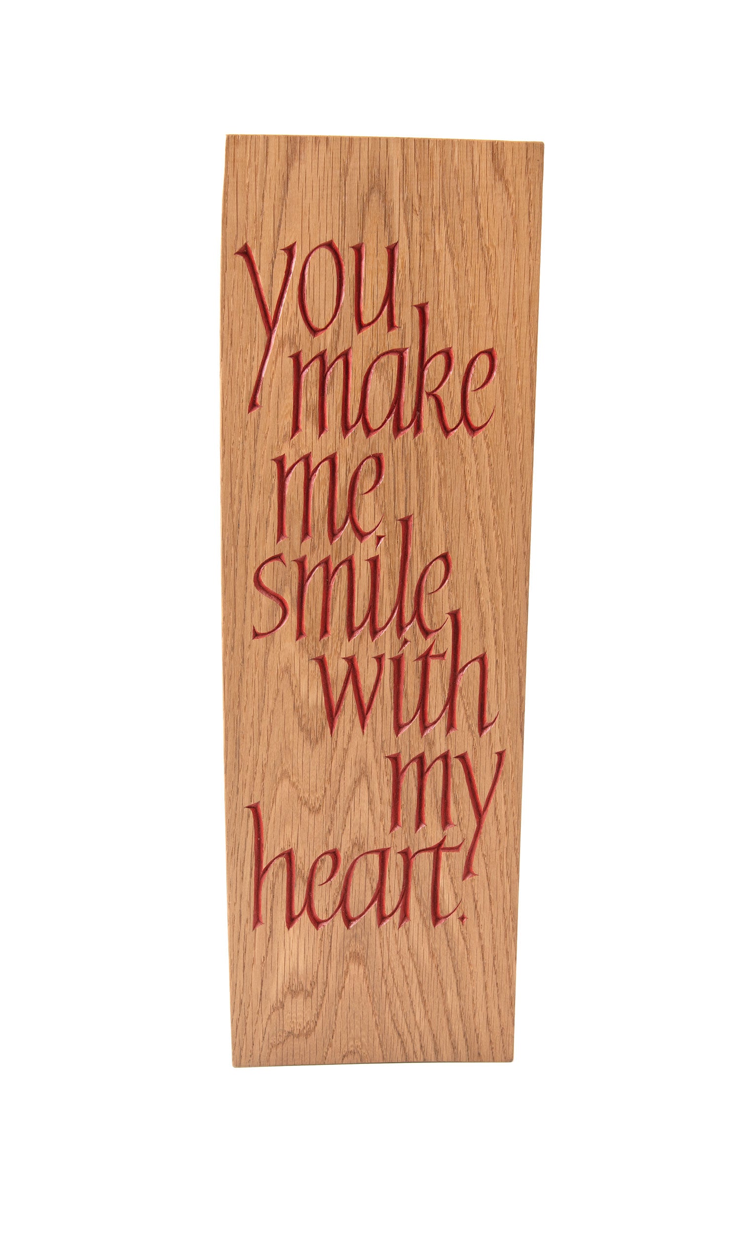 Acrylic on carved oak; an offcut from a friend of Wenham's workshop.