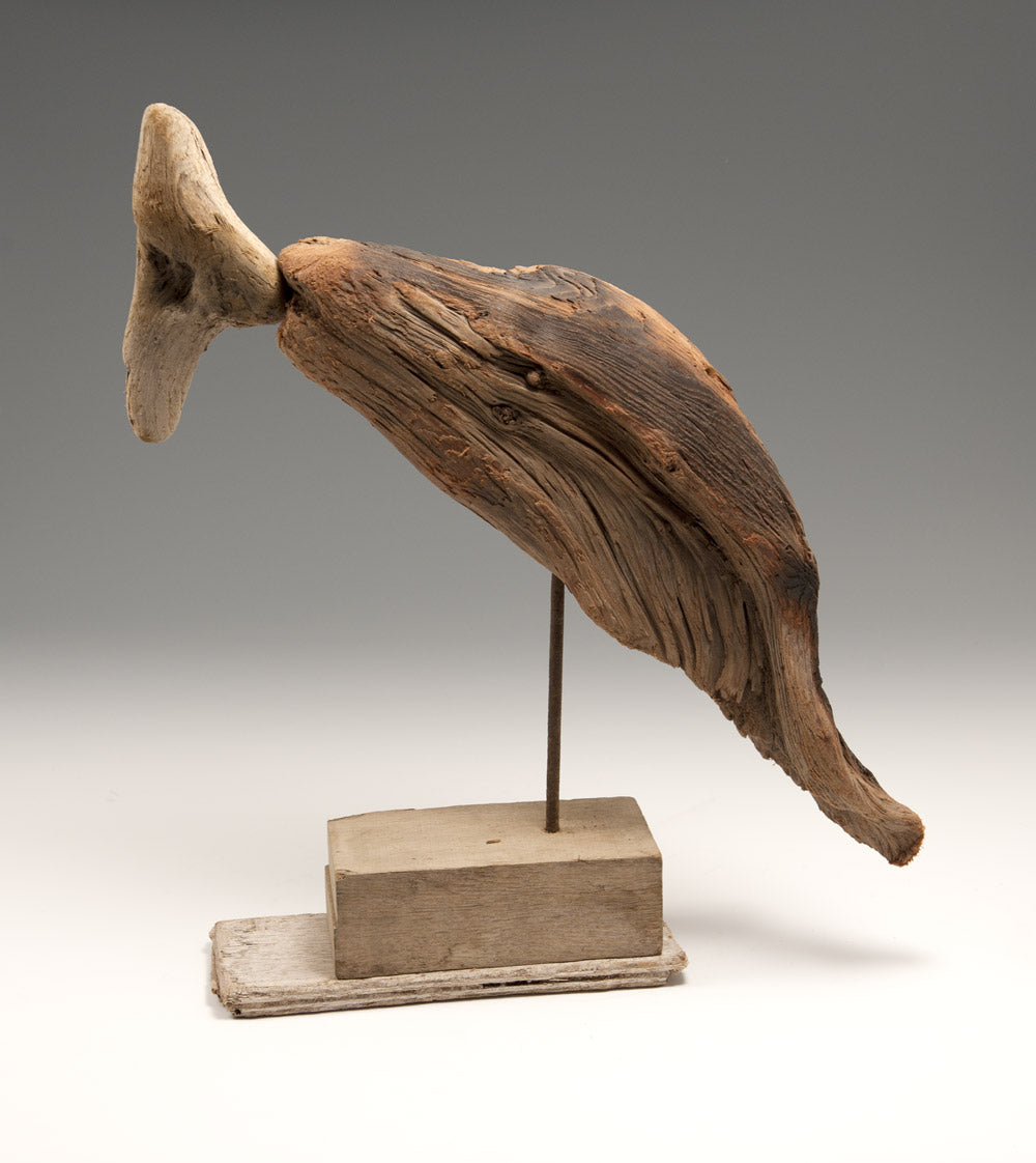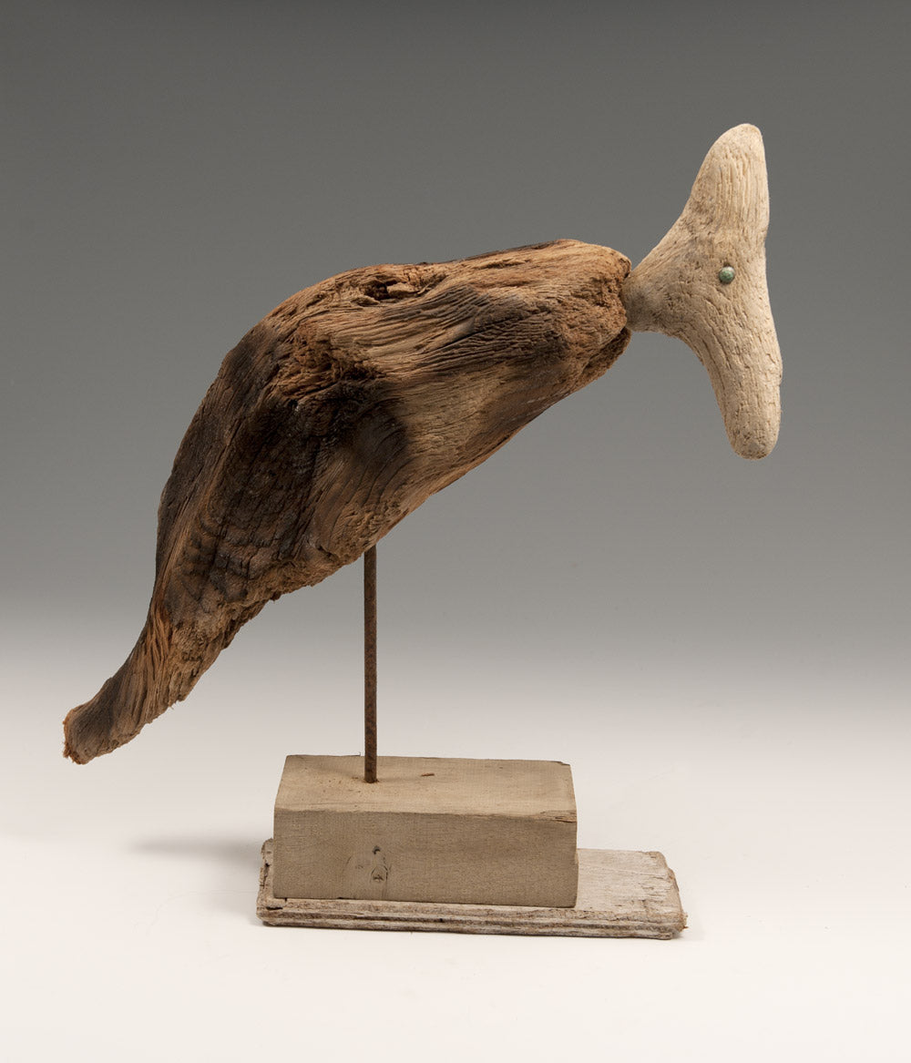 He is now based in Borth near Aberystwyth in Wales, where the flotsam and jetsam from the nearby sea is his only source of materials. Working with found objects, nothing is changed - simply introduced to one another. His driftwood pieces, usually birds, boats or mythical beasts, are full of his passion, integrity and wonderful humour.