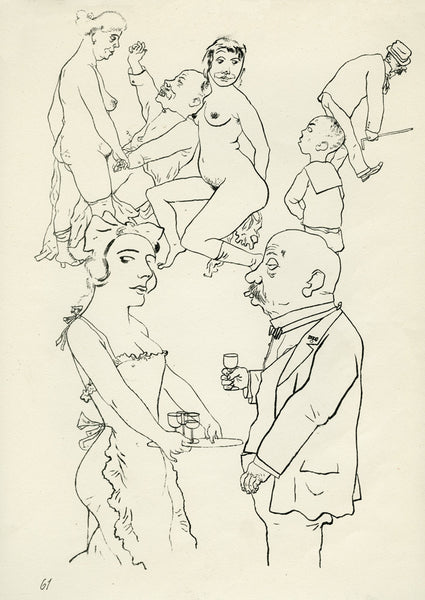 Grosz’s wartime experiences deeply affected his political outlook. He began to convey his hatred of German militarism in satirical images, though his subject matter was soon noticed by the authorities: Grosz was on one occasion prosecuted for indecent representations, which offend the sense of modesty and morality of a person of normal feeling. Inevitably, Grosz was hounded by the authorities and in 1933 he fled to America to settle permanently, returning to Berlin just once before his death there in 1959.
