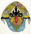 Scottie Wilson's primitive style is instatly recognisable with his largely familiar motifs of butterflies, birds, faces and fish.