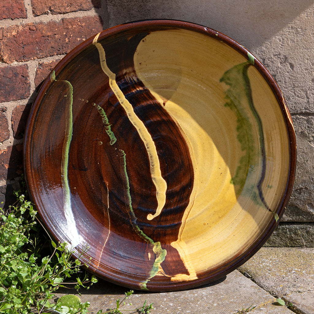 • Brown & yellow with green slip trailing • Unsigned • 6cm x 54cm