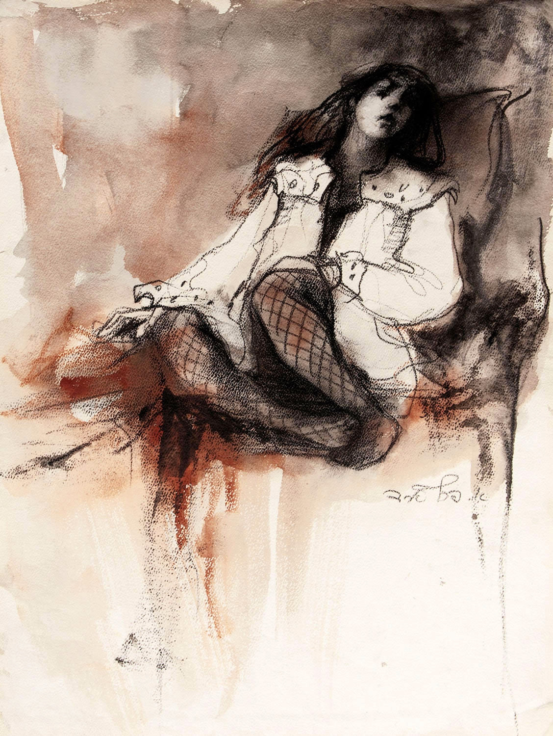 'Throughout her drawings of women there is a tenderness and an intimacy; not an intimacy that feels hackneyed, or trapped within an old tradition of life models. One of the most arresting works on paper in the Goldmark collection is a charcoal drawing of a barefoot girl in fishnet stockings reclining into the shadows; the brightness of her white, elaborate dress or jacket reflects onto her face and lights up the paper from within.'