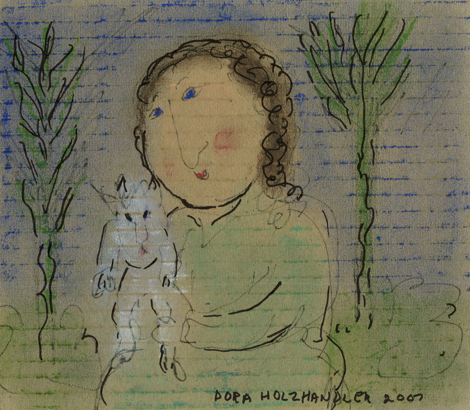 Her childhood memories and Jewish roots permeate her work, as do her Buddhist beliefs, and she claims that “now, as a Buddhist, I can really enjoy being Jewish.” Holzhandler’s innocent art has many fans, including Irish writer Edna O’Brien, television art historian Sister Wendy Beckett and comedian Jack Dee amongst others.