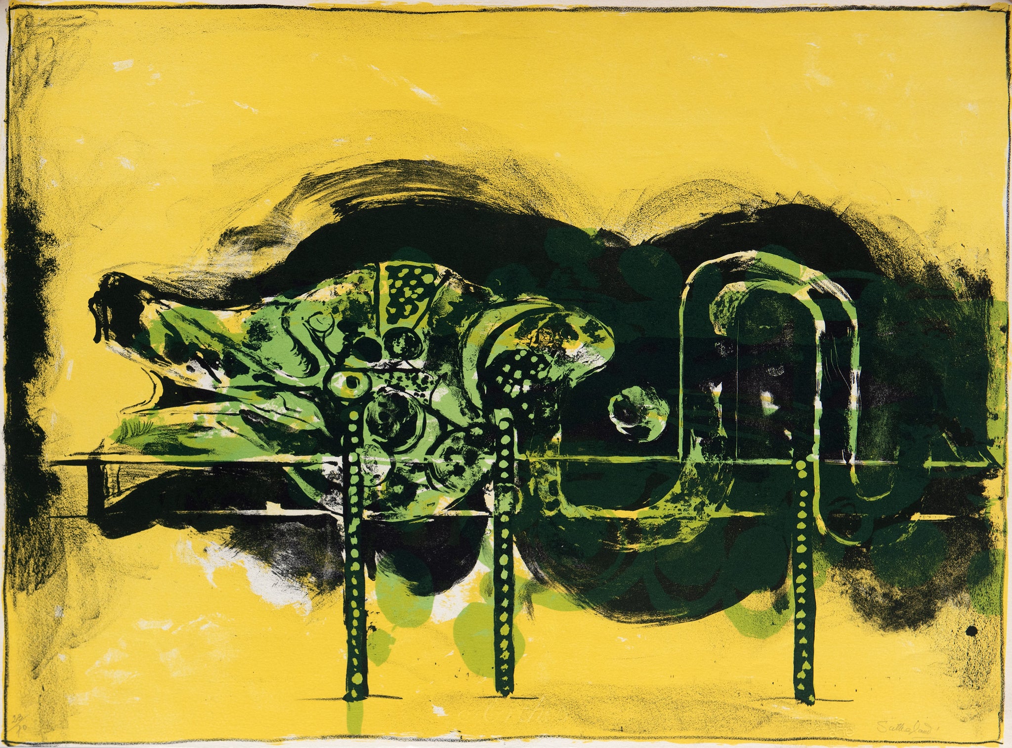 Signed lithograph in 3 colours. Unnumbered, aside from the edition of 70.