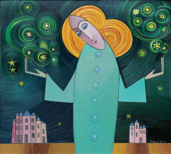The Kuhn family spent several years in refugee camps in Iran, Palestine and Egypt and much of the subject matter and imagery of Kuhn’s paintings seems to originate from that period of his life. He arrived in England in 1947 and won a scholarship to the Chelsea School of Art at the age of twenty-four.