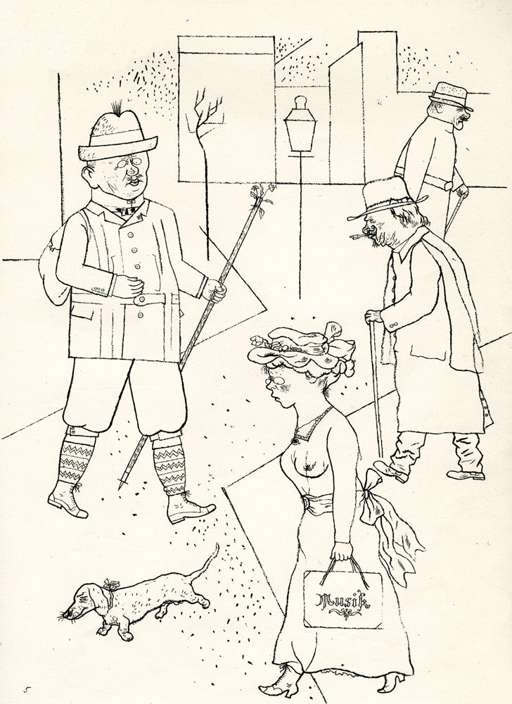 Grosz’s wartime experiences deeply affected his political outlook. He began to convey his hatred of German militarism in satirical images, though his subject matter was soon noticed by the authorities: Grosz was on one occasion prosecuted for indecent representations, which offend the sense of modesty and morality of a person of normal feeling. Inevitably, Grosz was hounded by the authorities and in 1933 he fled to America to settle permanently, returning to Berlin just once before his death there in 1959.