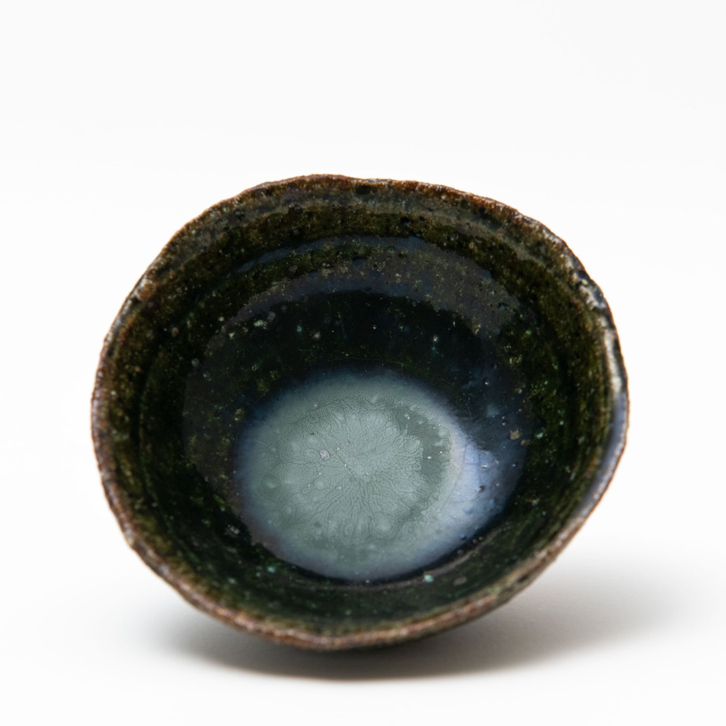 Her sake ‘monsters’ combine Jurassic dinosaur bodies with dainty beaks and curled up feet, while her jungle-green Oribe, cresting and pooling into opaque aquamarine blue, is a thing of prehistoric beauty.