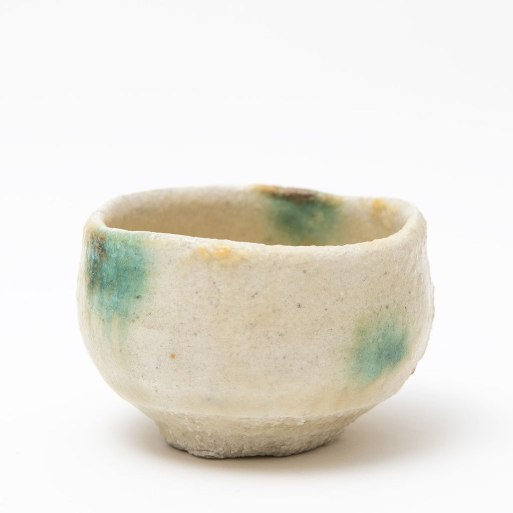 Her sake ‘monsters’ combine Jurassic dinosaur bodies with dainty beaks and curled up feet, while her jungle-green Oribe, cresting and pooling into opaque aquamarine blue, is a thing of prehistoric beauty.