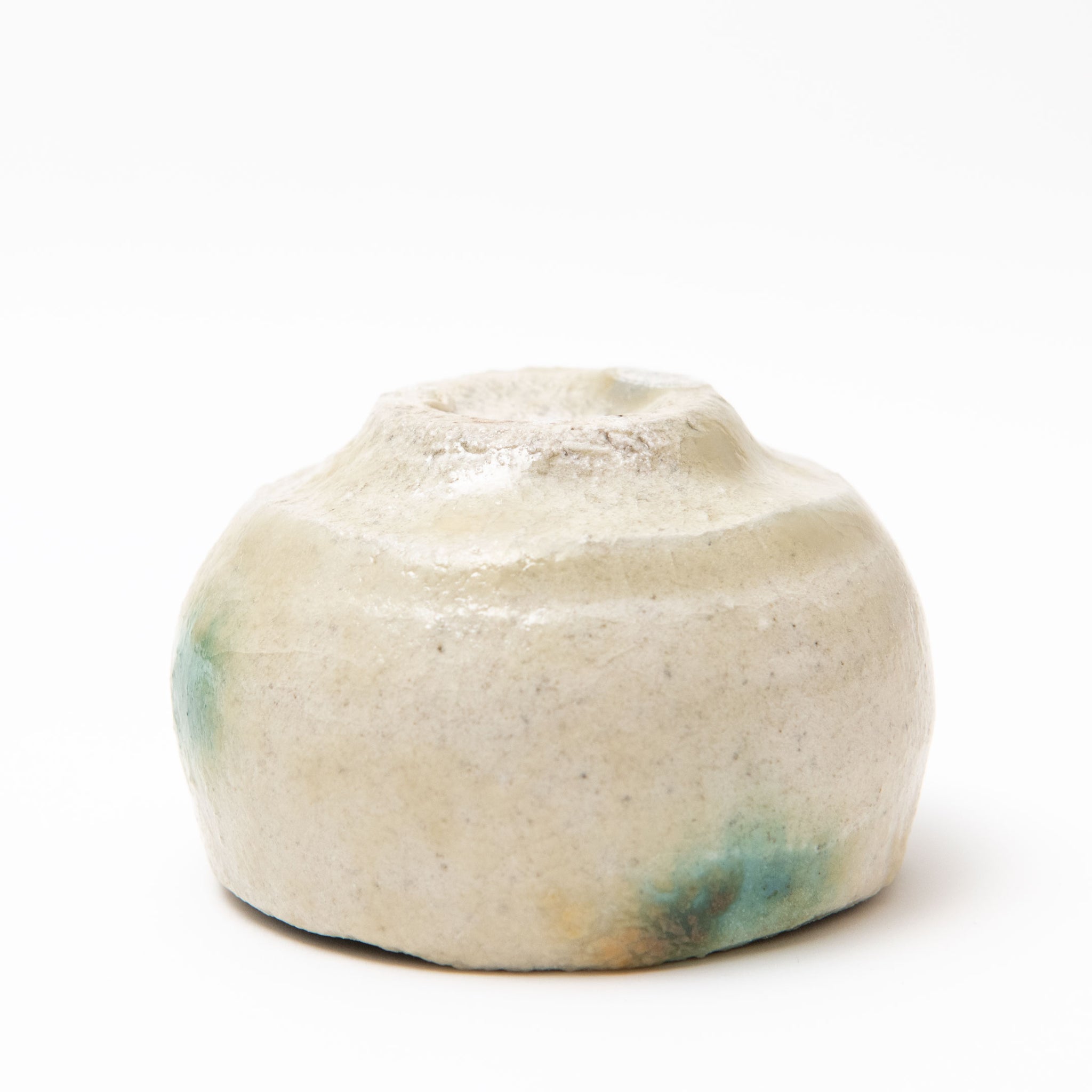 Her sake ‘monsters’ combine Jurassic dinosaur bodies with dainty beaks and curled up feet, while her jungle-green Oribe, cresting and pooling into opaque aquamarine blue, is a thing of prehistoric beauty.