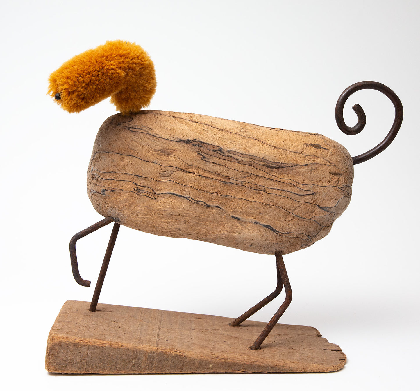 He is now based in Borth near Aberystwyth in Wales, where the flotsam and jetsam from the nearby sea is his only source of materials. Working with found objects, nothing is changed - simply introduced to one another. His driftwood pieces, usually birds, boats or mythical beasts, are full of his passion, integrity and wonderful humour.