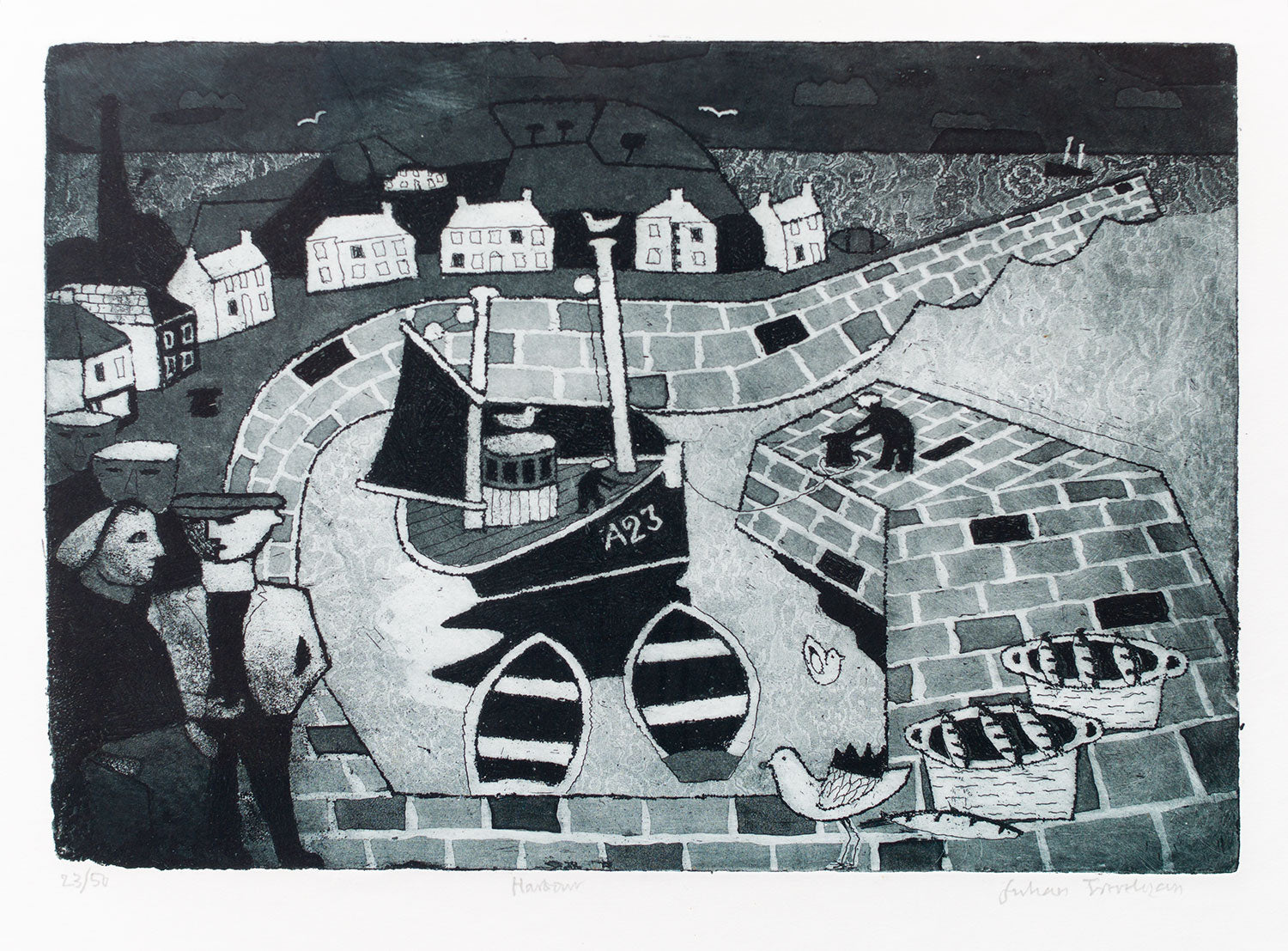 In 1935 he set up his etching studio at Durham Wharf in Hammersmith, where he remained until his death in 1988. From 1955-63, Trevelyan worked at the Royal College of Art and became Head of the Etching Department. Highly enthusiastic, he became an influential teacher, with students including David Hockney, Ron Kitaj and Norman Ackroyd.