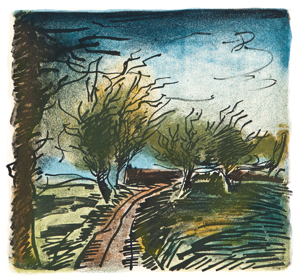 Vlaminck was born in Paris of ‘bohemian’ musical parents in 1876 and he in turn became an accomplished musician. It was only in 1900 when he met the painter André Derain that he started to take art seriously. Vlaminck’s typical subject matter became rural landscapes, often with overcast skies or storm scenes, lonely village streets or cottages and still-lifes.