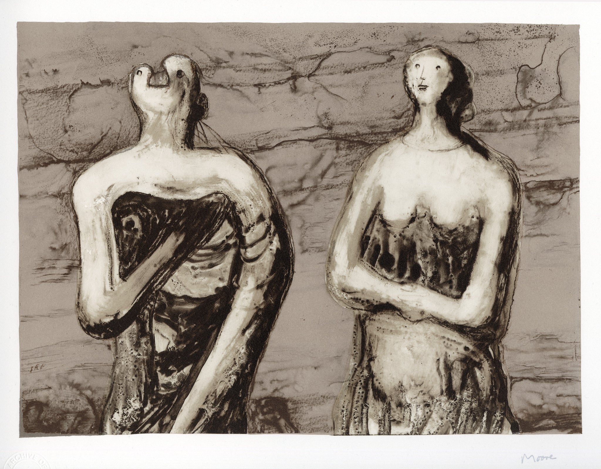Blind stamped from the archive of Curwen Master Printer Stanley Jones. Jones worked closely with Moore at the Curwen Press from the late fifties for over 20 years.