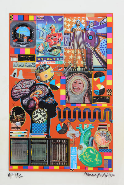 A significant member of the Group, Paolozzi greatly influenced the development of Pop Art. He emerged fully onto the Pop Art scene in 1962 with his abstract, robot-like figures such as Four Towers and Solo, but of all his work his screenprints are said to have had the largest impact on Pop Art. He taught all over the world as guest professor and lecturer, and was knighted in 1988. Eduardo Paolozzi died in 2005.
