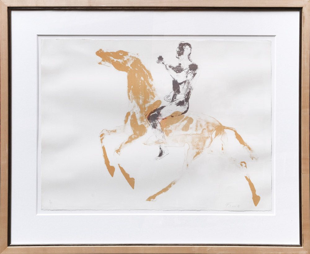Frink taught at the Royal College of Art and also embarked upon her printmaking career, primarily producing lithographs and etchings. As one of Britain’s leading sculptors, Frink received many public accolades including a C.B.E. (1969), being made a Royal Academician (1977), a Dame of the British Empire (1982) and a Companion of Honour (1992). Elisabeth Frink died in 1993.
