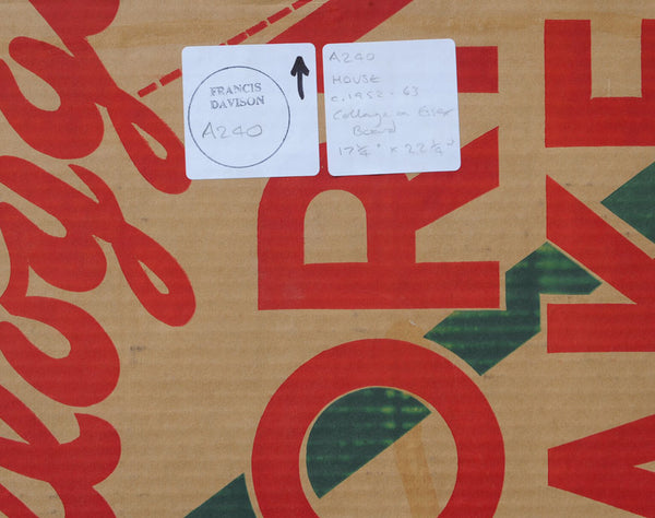Francis Davison was adopted and brought up in the south of France. Though he read English at Cambridge University and intended to become a poet, in 1946 Davison was invited to go to St. Ives by his former school friend the artist Patrick Heron. There he met Margaret Mellis, settling in Suffolk in 1950. By 1952 Davison had begun to work in collage, and would do so for the next 20 years.