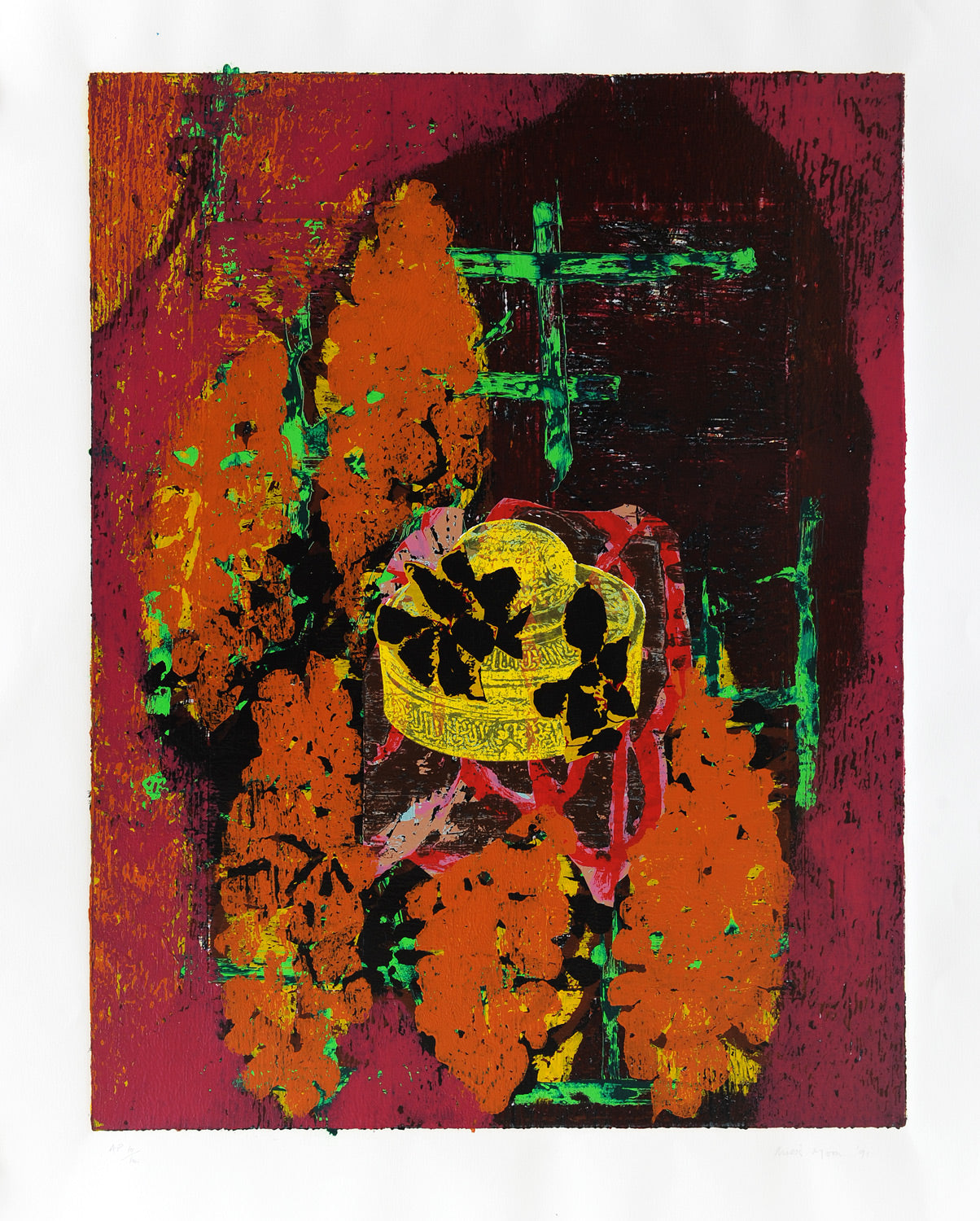 Signed original screenprint with woodblock on paper. Artist's proof in a small edition of 10, aside from the main edition of 45.