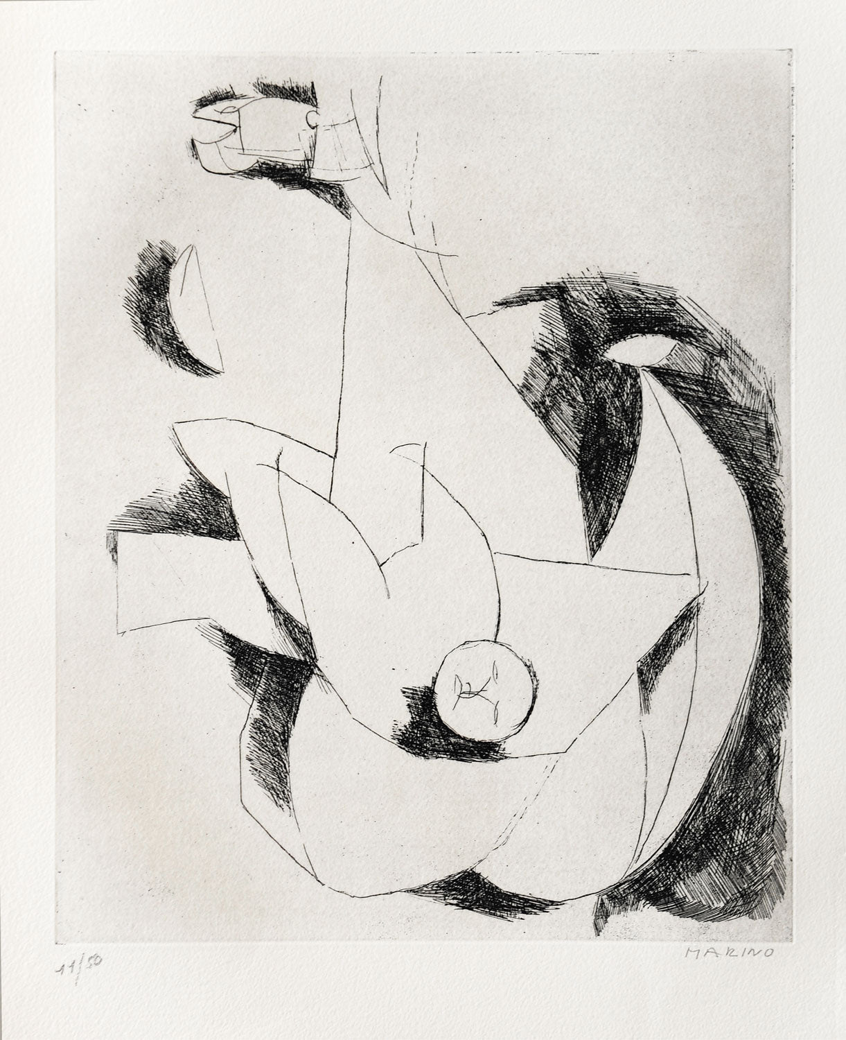 The horse and rider and simple nudes take their inspiration from Etruscan art and classical mythology and are enduring themes throughout Marini's sculpture and printmaking.