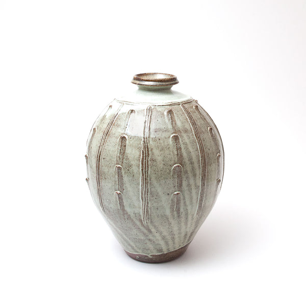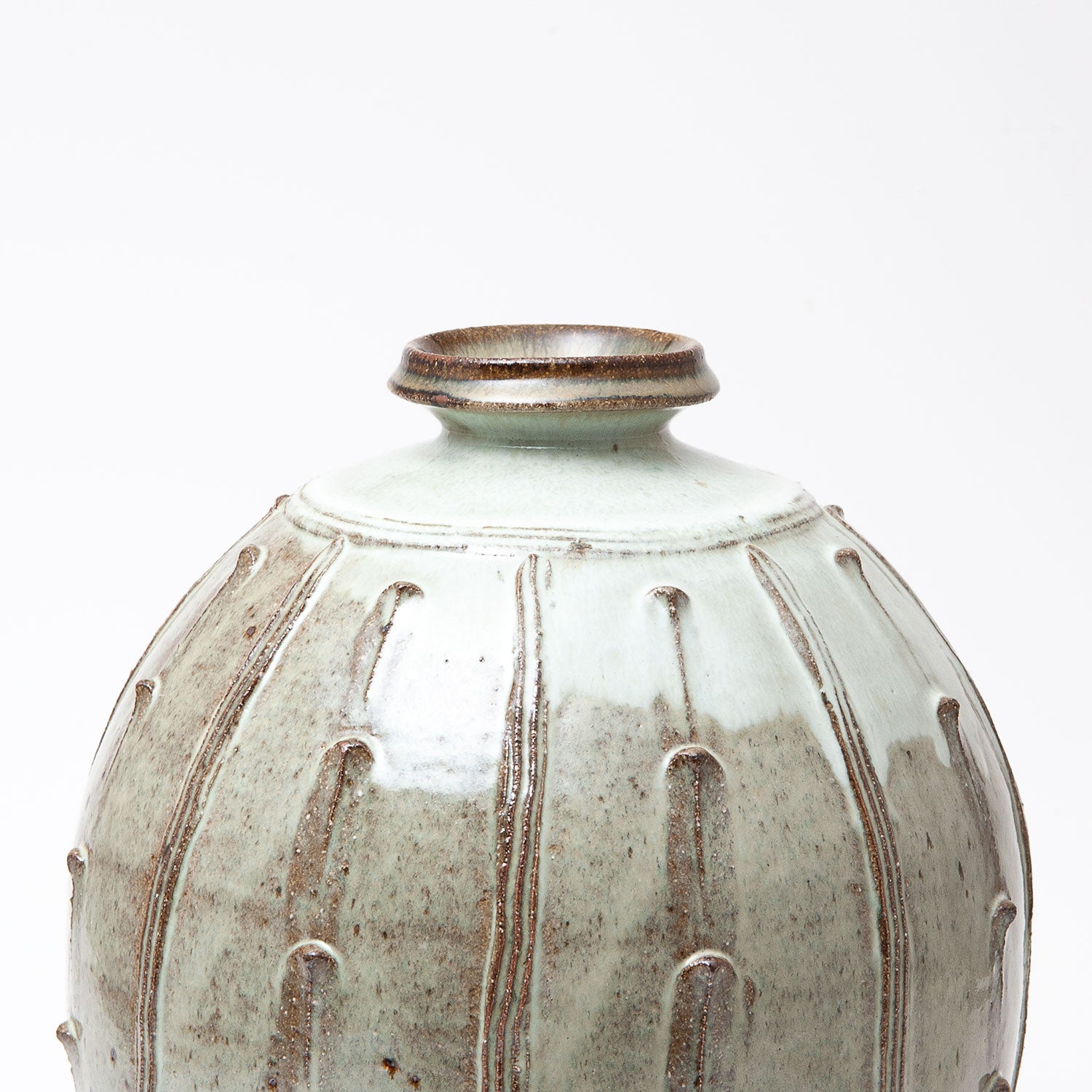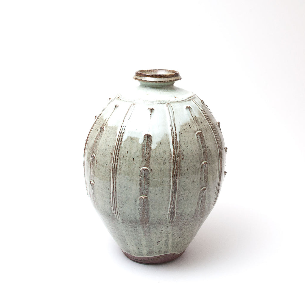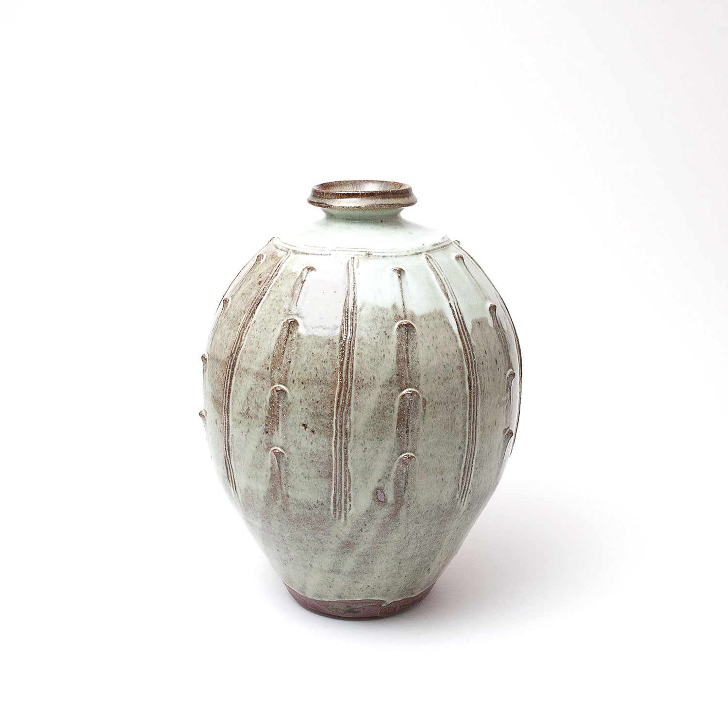 Phil Rogers was born in Newport, Gwent in 1951. He attended Newport and Swansea Colleges of Art and had originally intended to become a painter. While still at college in the early 1970s Rogers and a friend taught themselves to throw. Their only guidance came from Bernard Leach’s A Potter’s Book and their throwing practice came in the form of competitions to see who could produce the biggest pot.