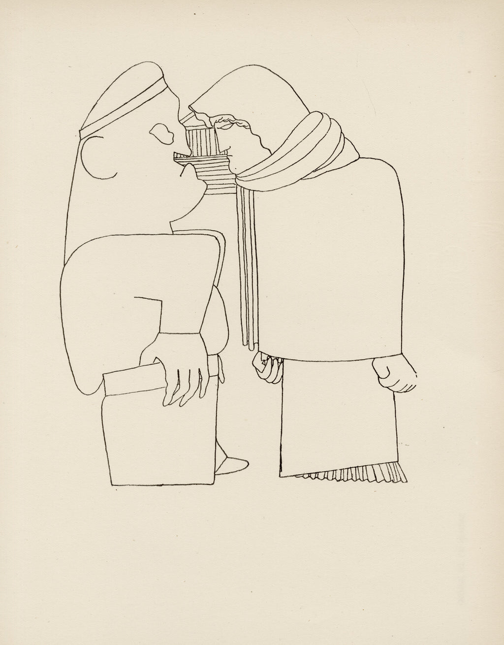 Published as a series of line cuts of Cocteau’s early drawings, dedicated to Picasso with the apology: “Poets do not draw. They untie the knots in handwriting and then retie them differently.”A line cut is printed from a letterpress printing plate made from a line drawing by a photoengraving process. Also called line engraving.