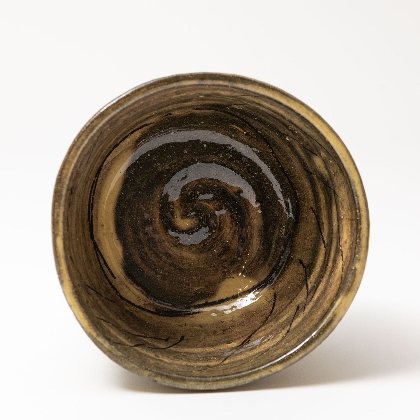 • Yellow & brown with sgraffito • Signed • 10cm x 15.5cm