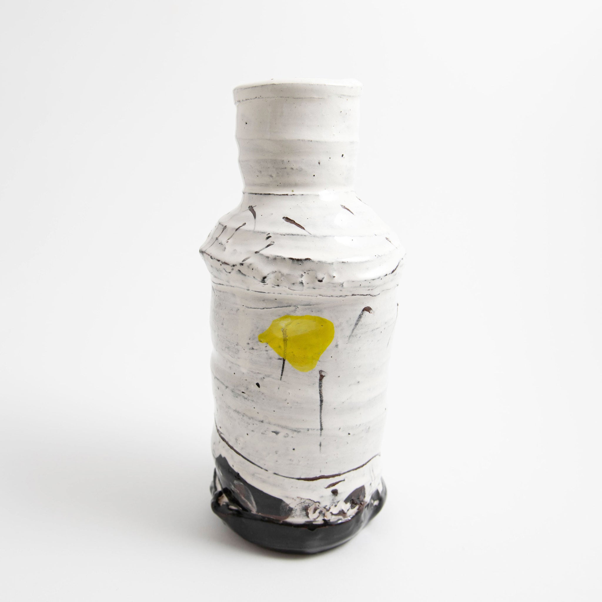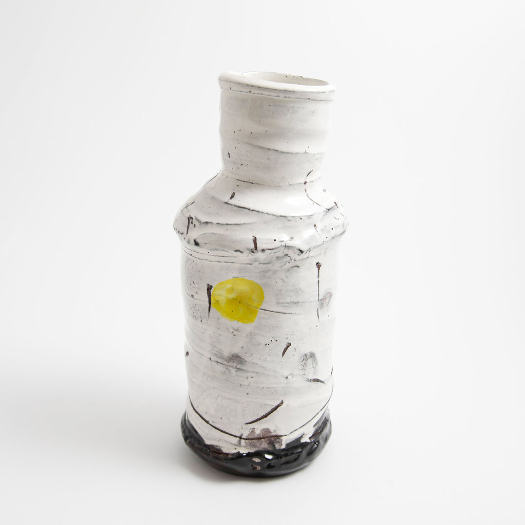 • White with two yellow finger spots & sgraffito • Signed • 23cm x 10cm