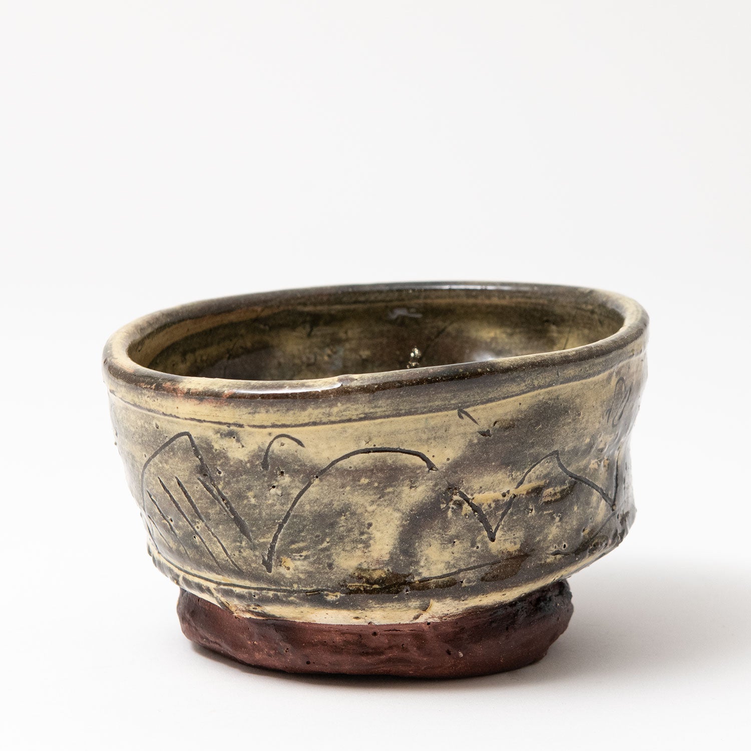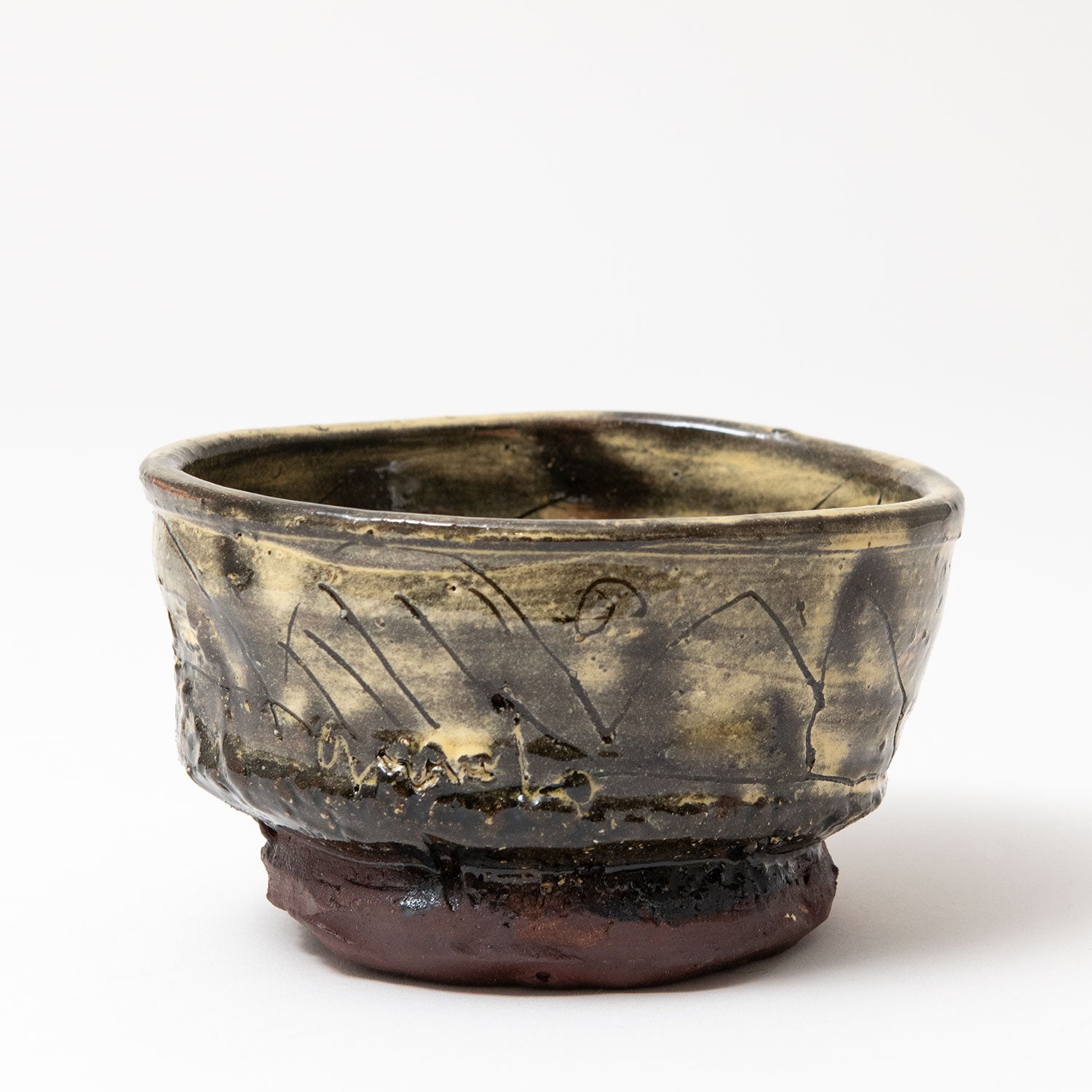 • Yellow & brown with sgraffito • Signed • 7.5cm x 13cm