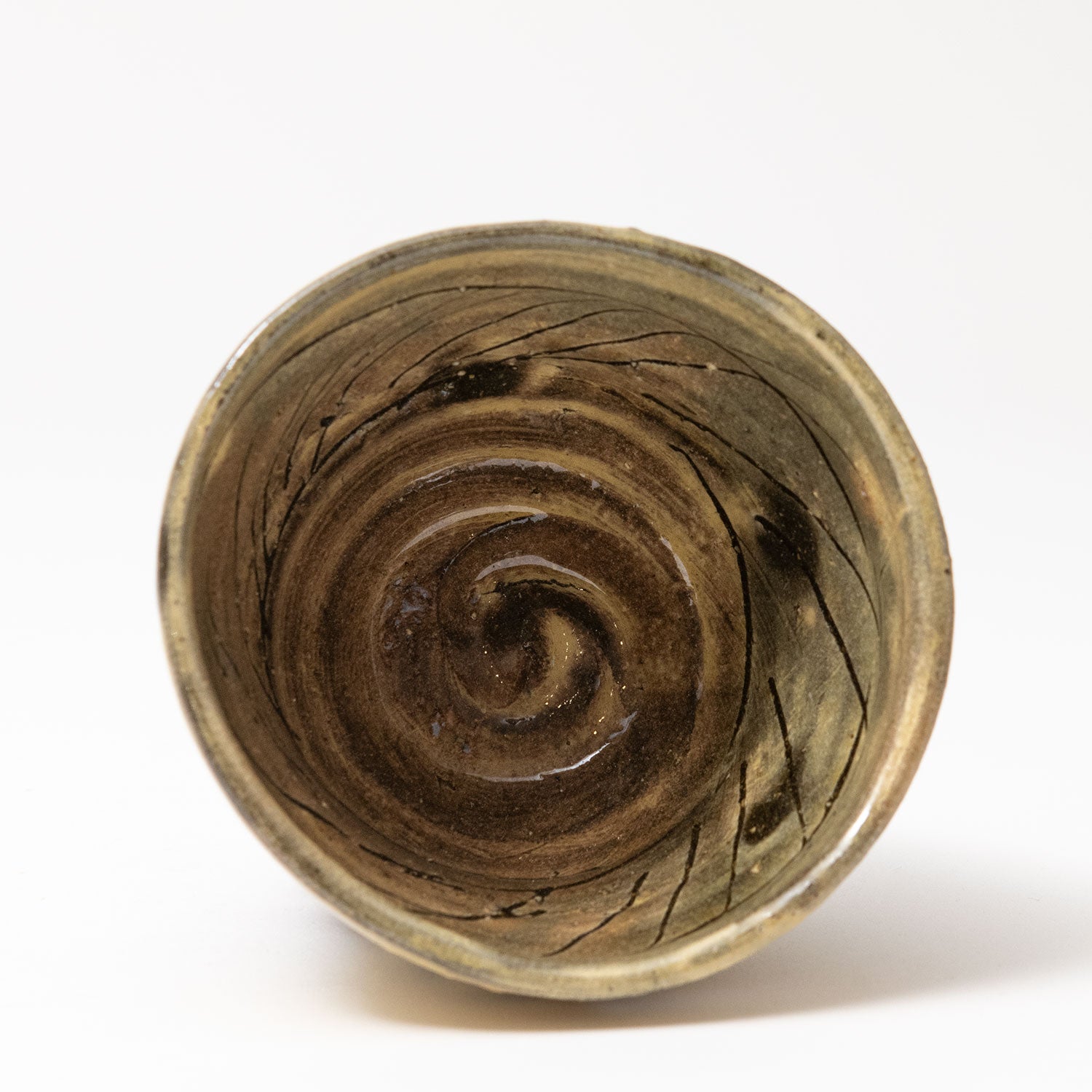 • Yellow & brown with sgraffito • Signed • 9cm x 12.5cm