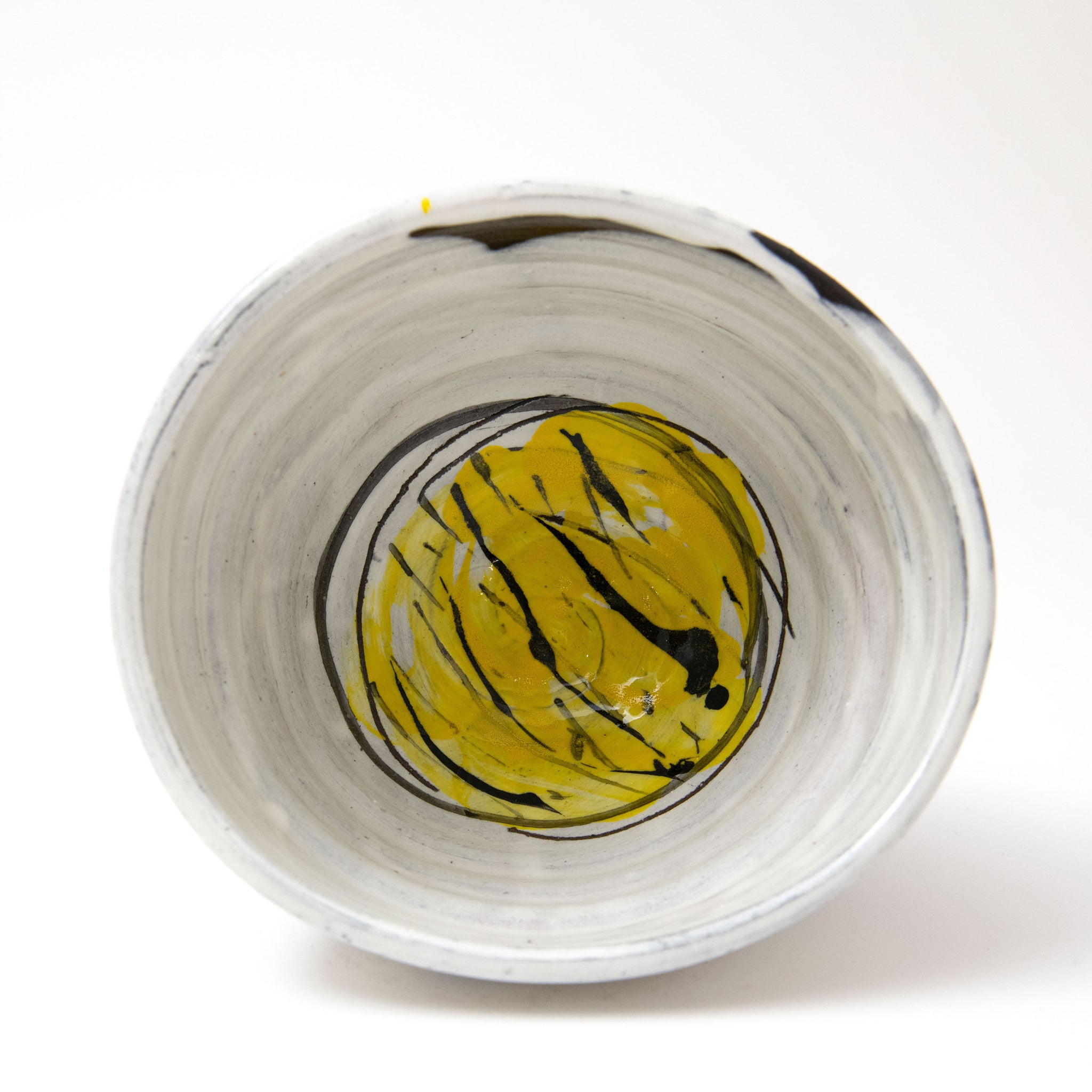 Black & white with yellow base & sgraffito