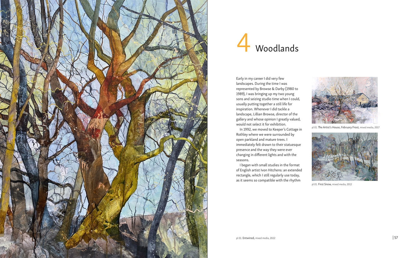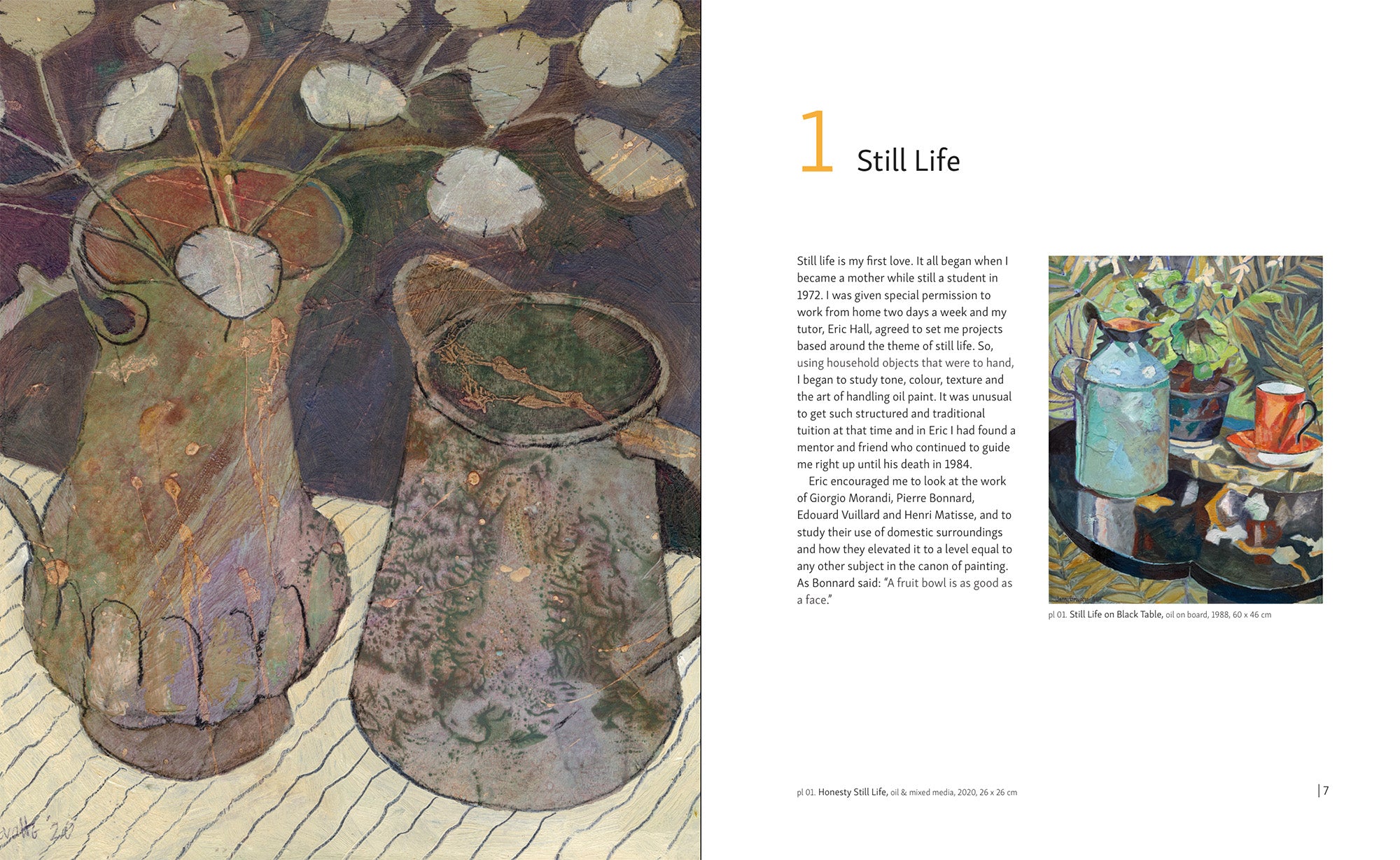 Jenny Grevatte is continually evolving and developing her ideas and methods. Recent themes include trees and woods, hedges, rooftops, huts , bookshelves, rock formations, sunflowers, artichokes, wild flowers and, her constant favourite, still life. Scale, format and composition are exciting challenges for her and recently she has been exploring the quality and mystery of changes of light in the landscape. A new and powerful theme is the moon, seen in all its varying moods and allowing Jenny to introduce a new palette of dark colours.