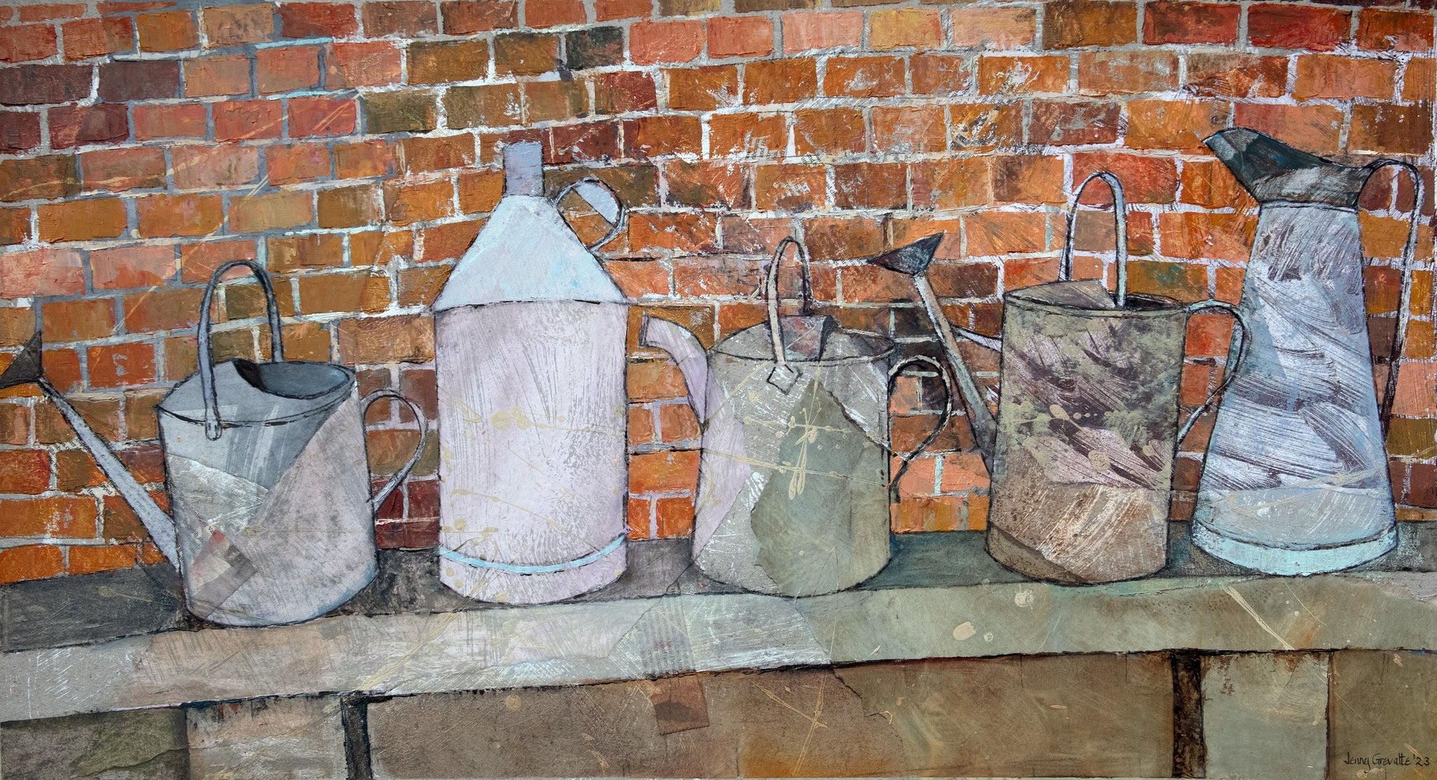 Grevatte’s attention sometimes veers toward the abstract, but always with a nod to the world around her. Today, her work is in demand in Britain and abroad with paintings in public collections including New Hall and Christ’s College, Cambridge; the National Museum of Johannesburg and the Saarland State Collection, Germany.