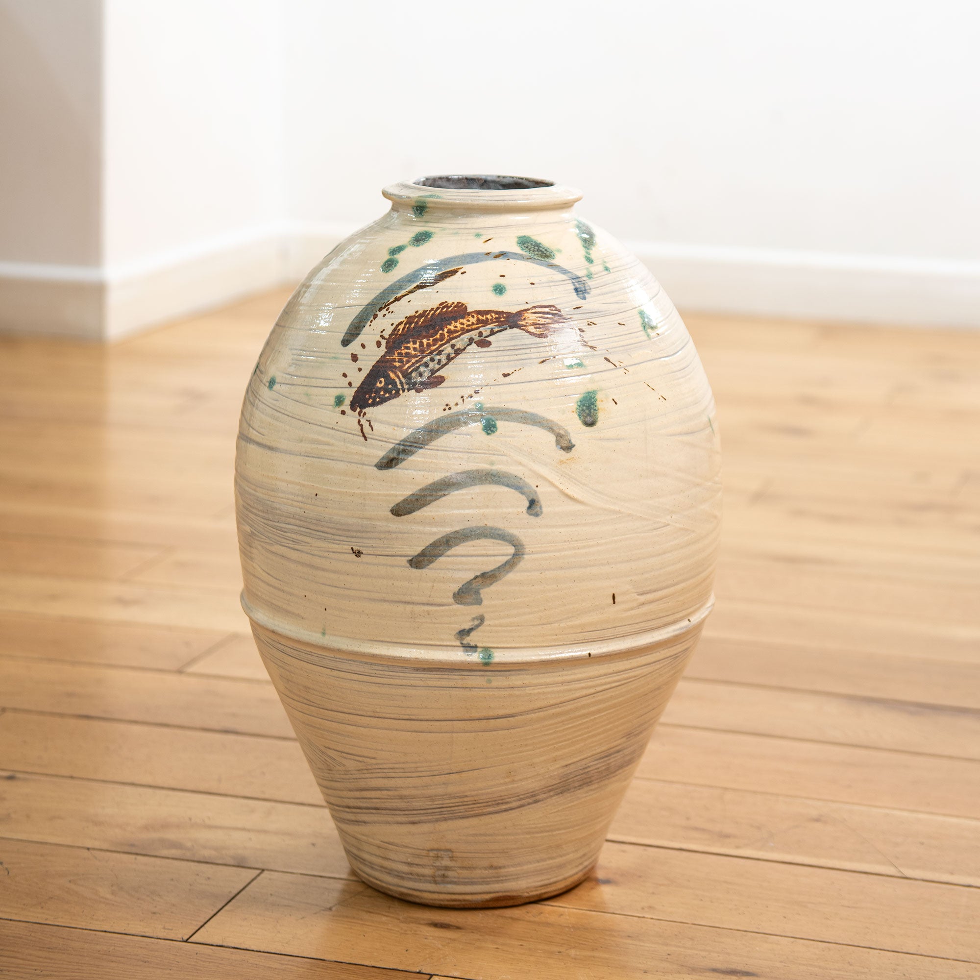 • Hakeme with leaping fish design • Signed • 45cm x 30cm