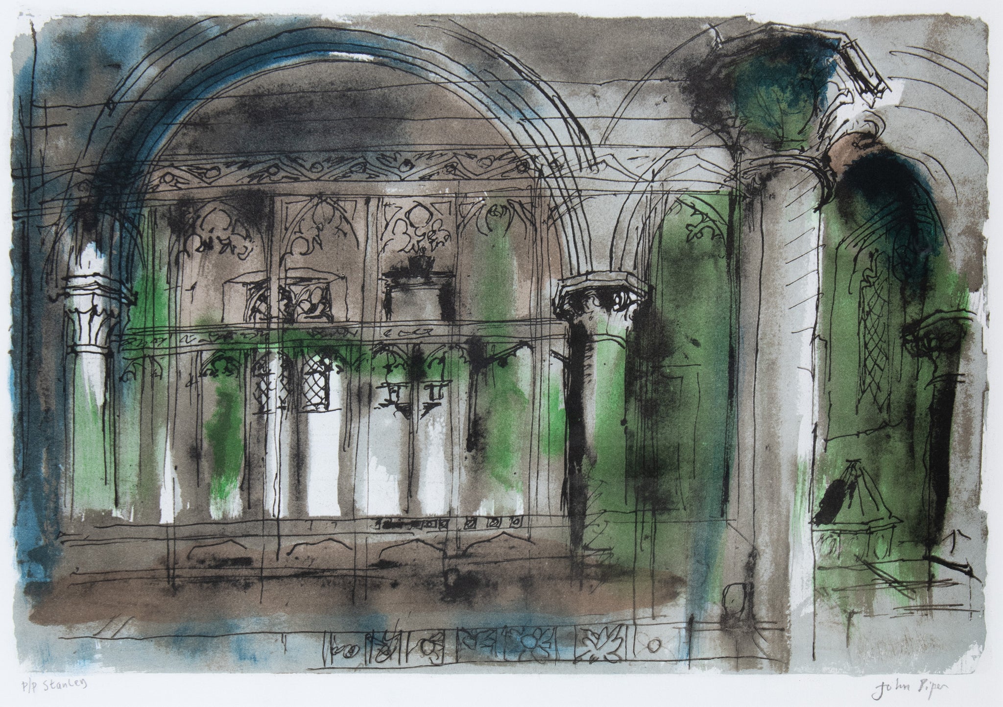Signed original lithograph. Printer's proof dedicated to Stanley aside from the edition of 100. Printed at the Curwen Studio and pubilshed by The Society for the Protection of Ancient Buildings. Piper donated this image to the SPAB in memory of John Betjeman.