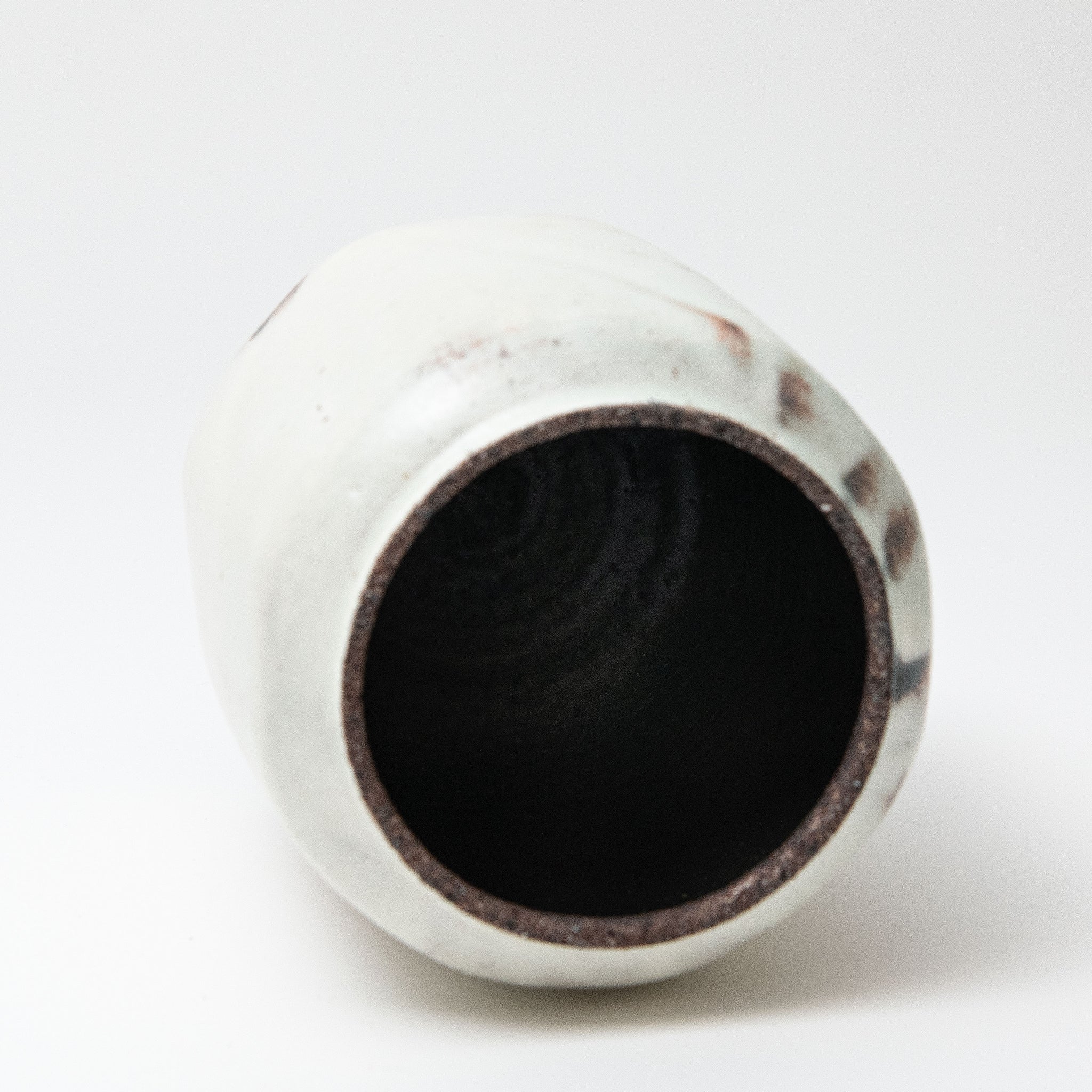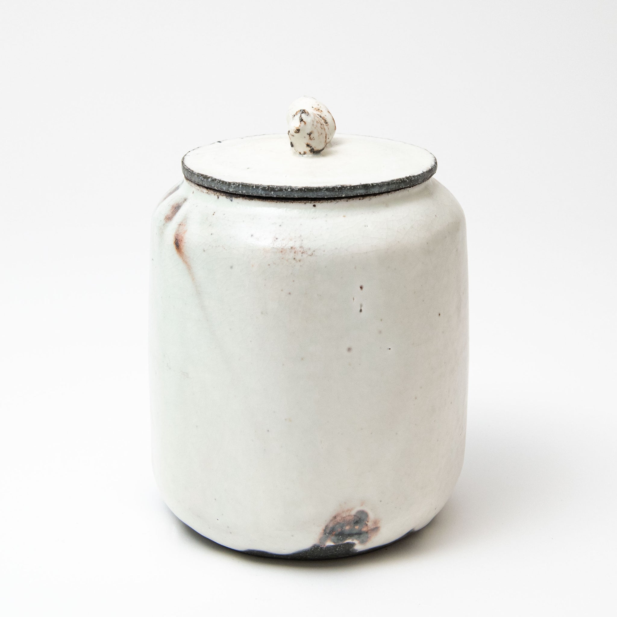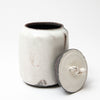 Lee decorates his pots using the traditional Korean method of Buncheong. White slip is applied to a dark stoneware body. Whilst it is still wet Lee uses his hands to spread it over the pot.