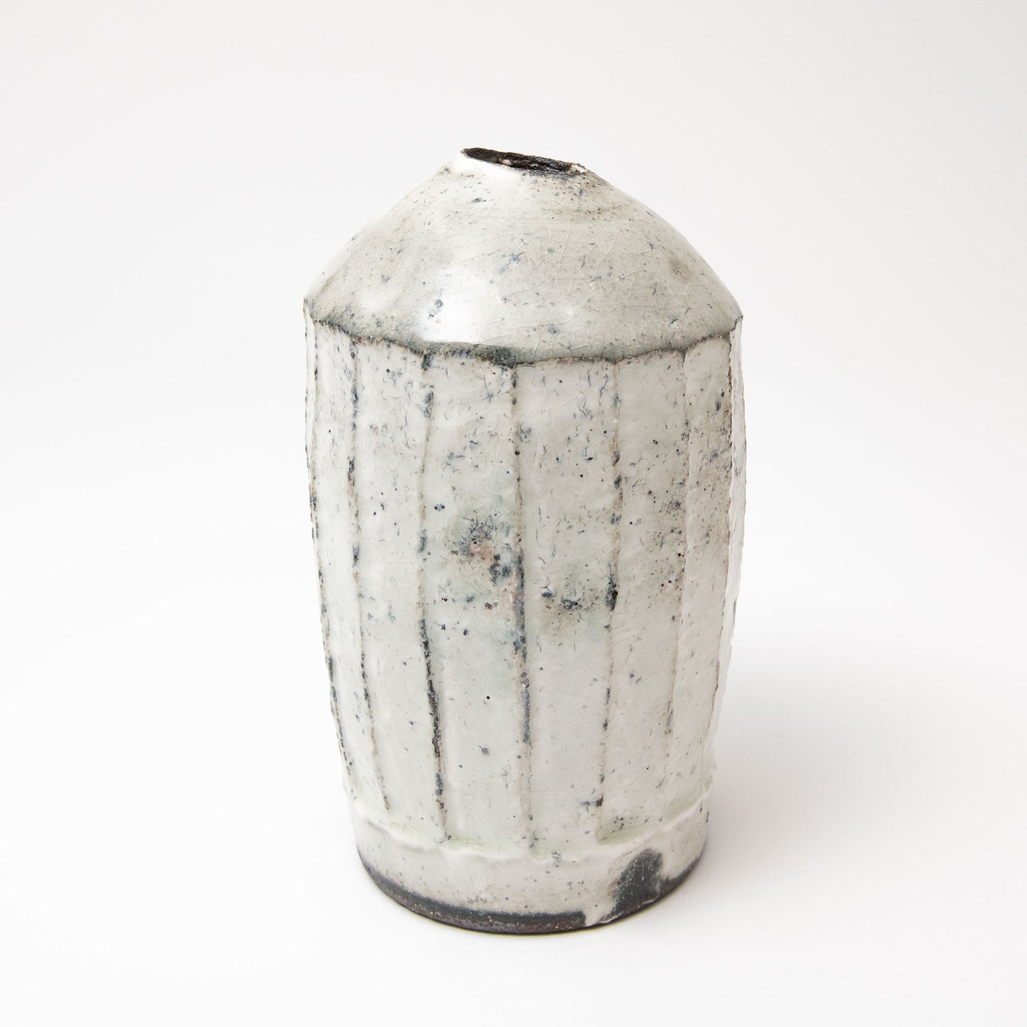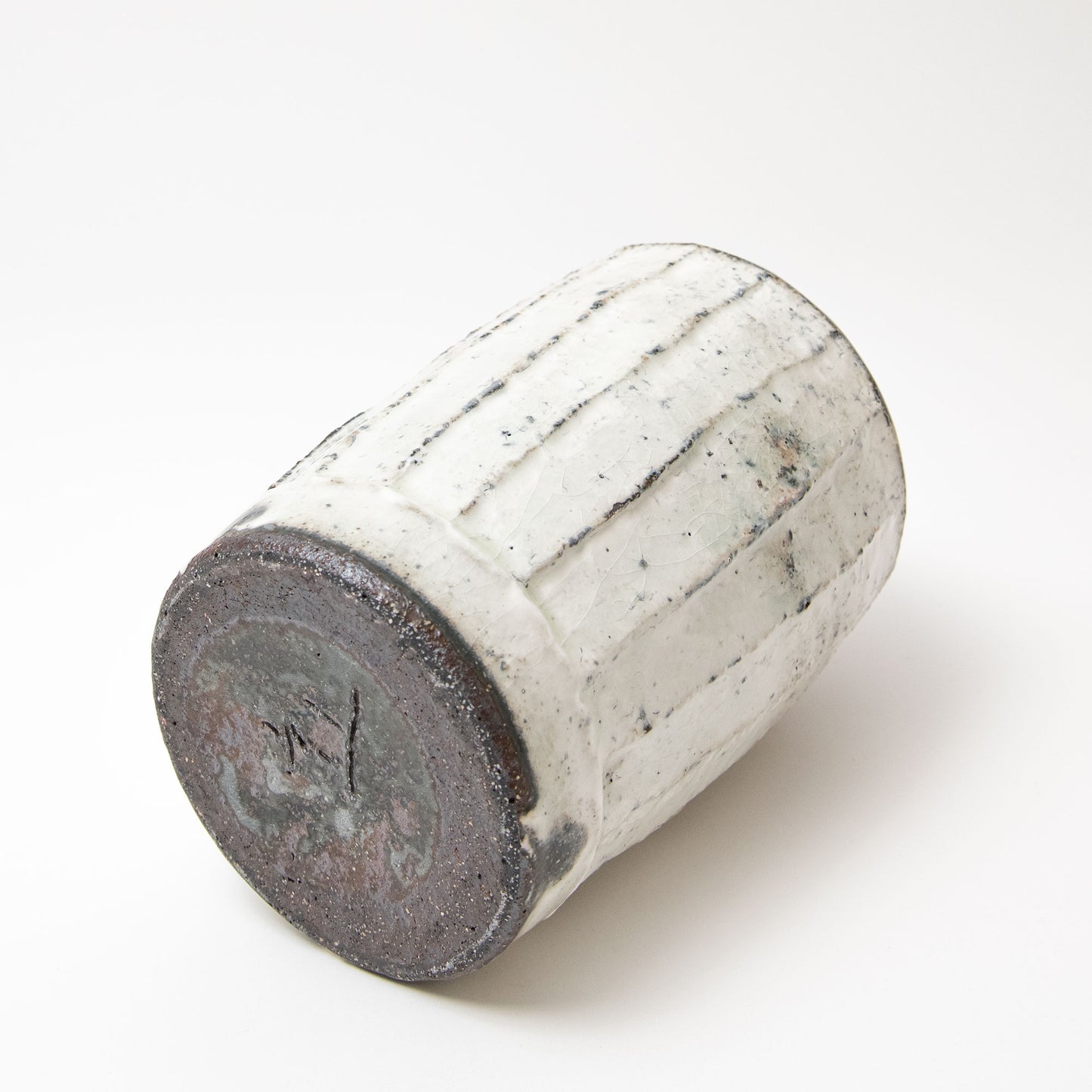 Lee decorates his pots using the traditional Korean method of Buncheong. White slip is applied to a dark stoneware body. A stiff bristled brush may be used to scratch into the semi dry surface of the pot. Forest, waterfall, the sky - nature is very much in evidence in Lee's beautiful pots.