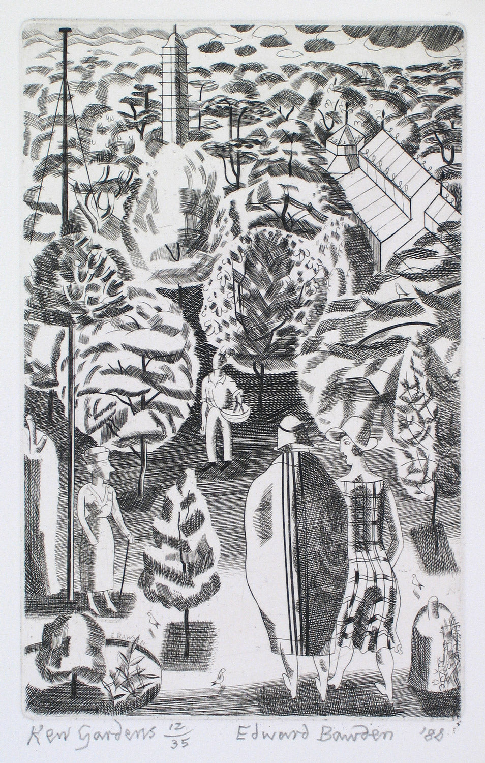 Producing work for London Transport, he was made an Official War Artist in 1940. After the war, he consolidated his artistic reputation with a large body of prints, illustrations, posters, catalogues and murals and attained full RA status in 1957. After a decline in popularity, in 1989 Bawden was accorded a major retrospective at the V. and A. Museum. Though too ill to attend, he died a happy man later that same year.